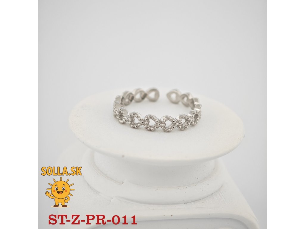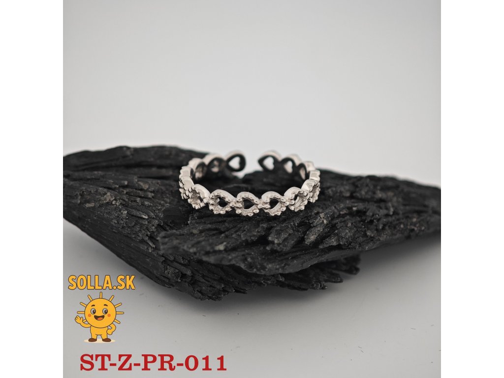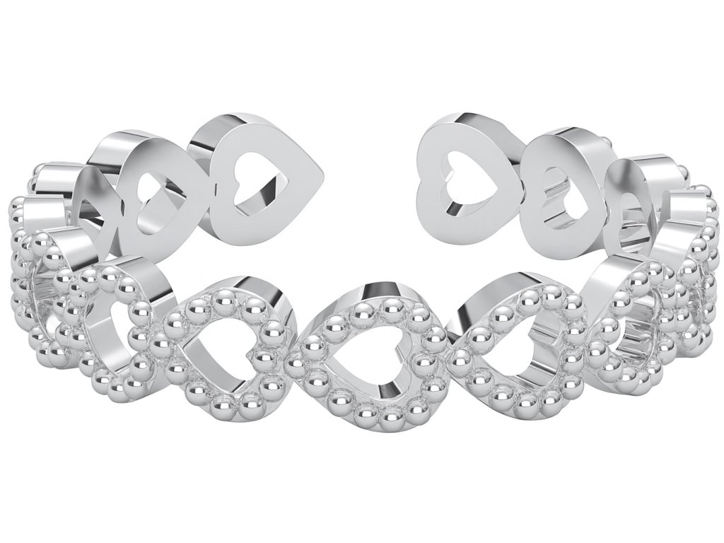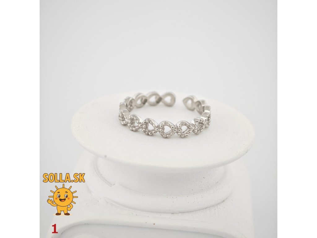 Strieborný prsteň Amora 925 s rhódiovou úpravou a vzorom prepojených srdiečok. Nastaviteľná veľkosť, symbol lásky a nežného spojenia.