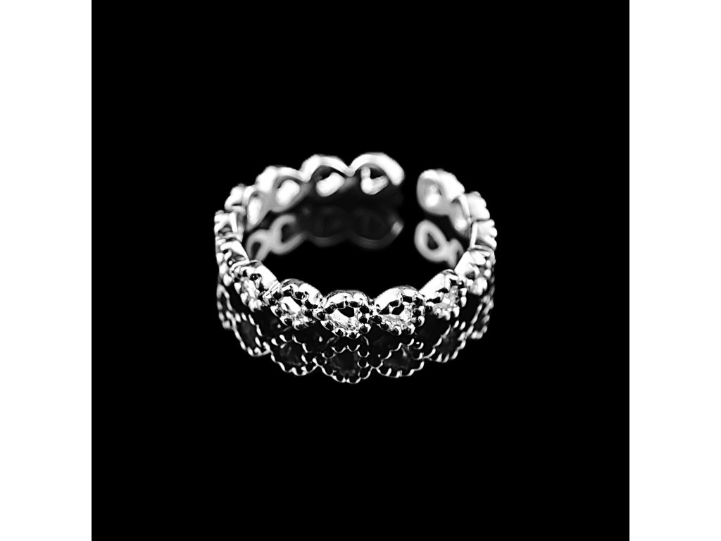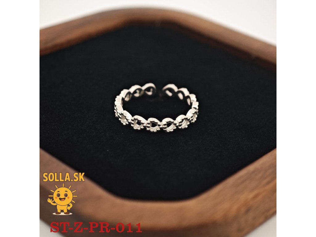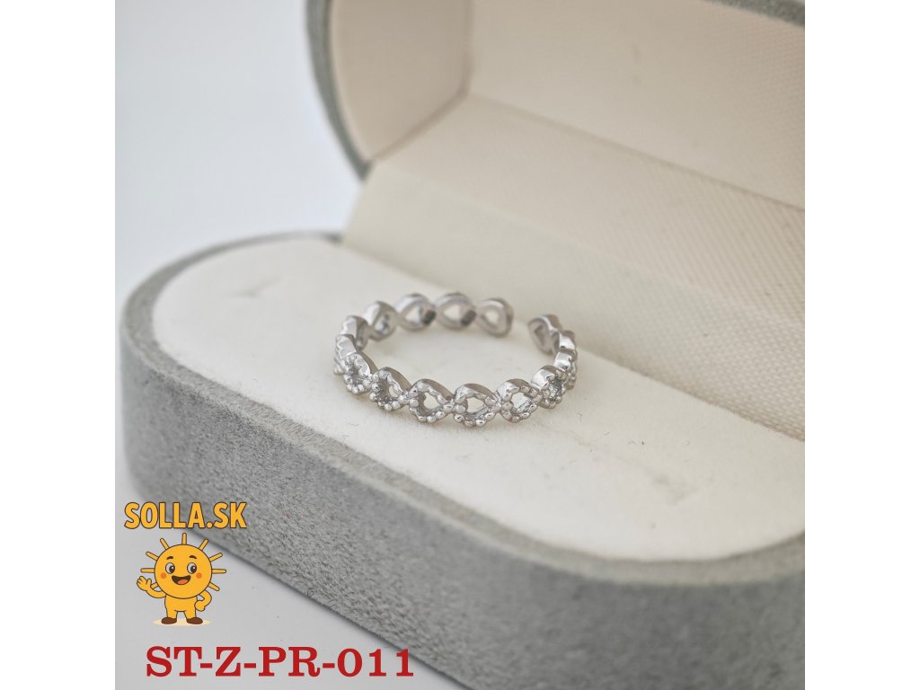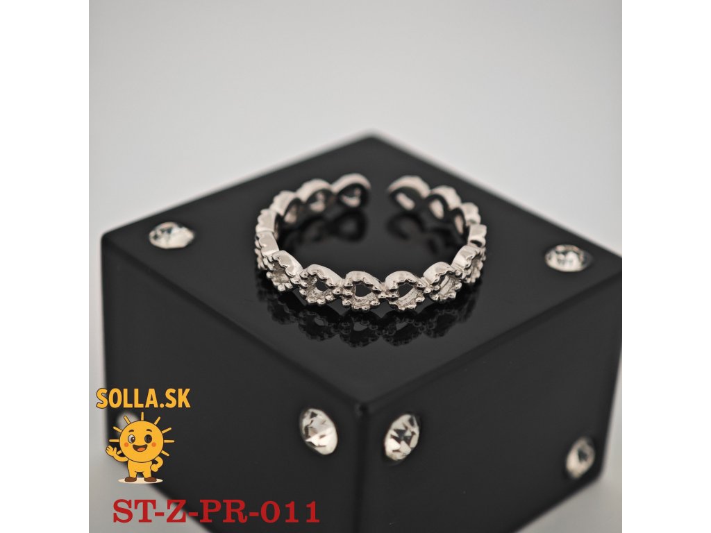 Strieborný prsteň Amora 925 s rhódiovou úpravou a vzorom prepojených srdiečok. Nastaviteľná veľkosť, symbol lásky a nežného spojenia.