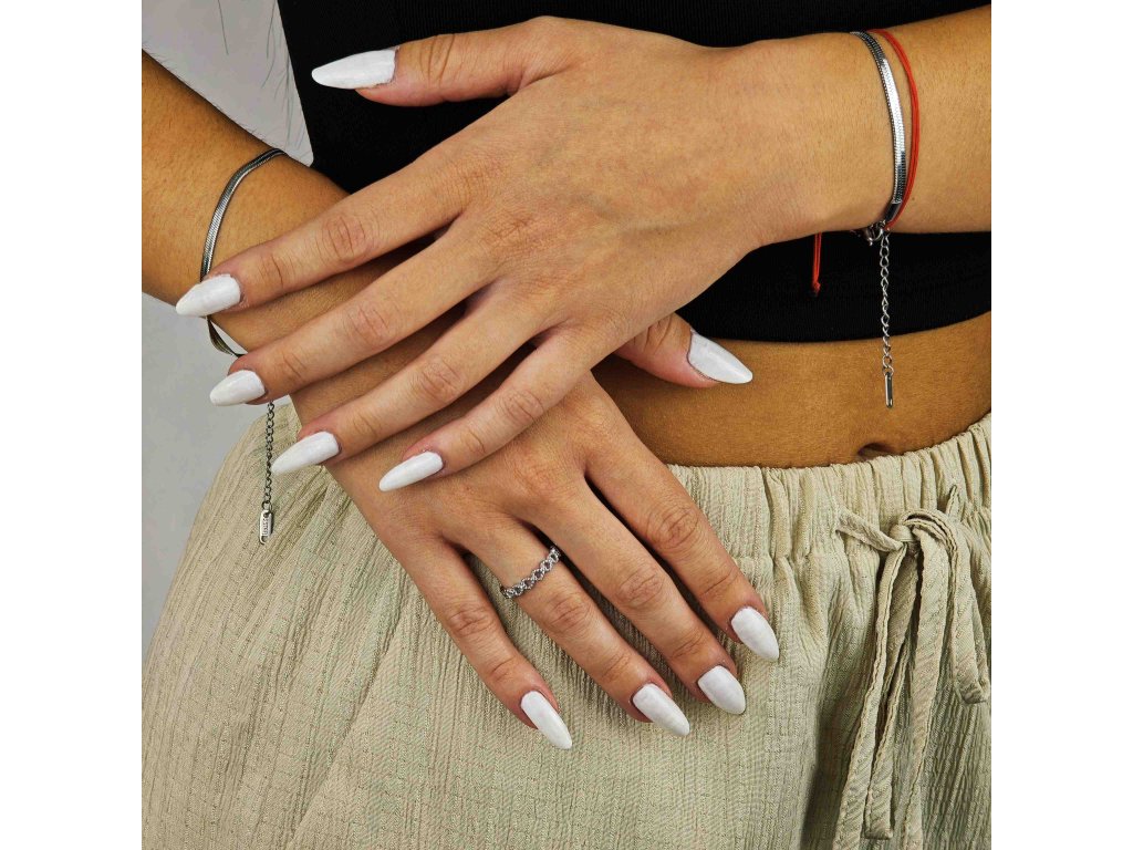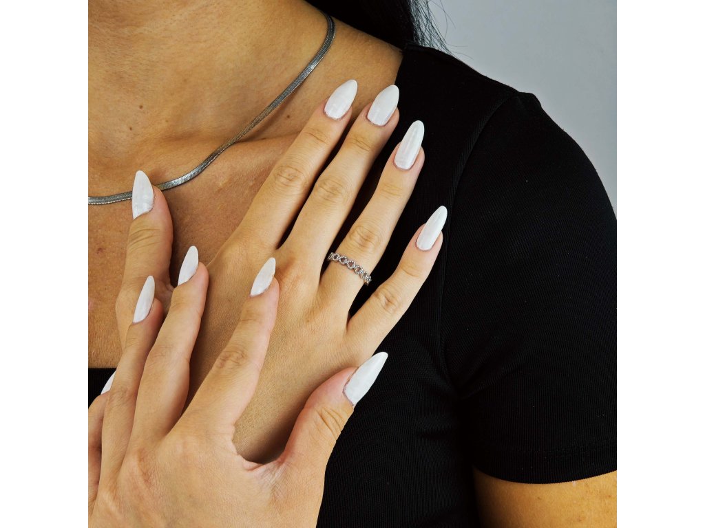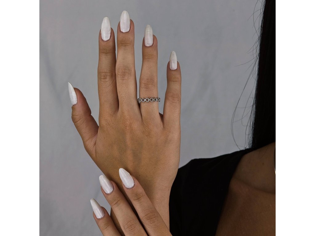 Vďaka nastaviteľnej veľkosti sa prsteň ľahko prispôsobí akejkoľvek ruke. Každé srdiečko sa leskne ako drobný odraz radostných spomienok a spoločných chvíľ. Amora je ako nepretržitý reťazec citov – pevný a nežný zároveň.
