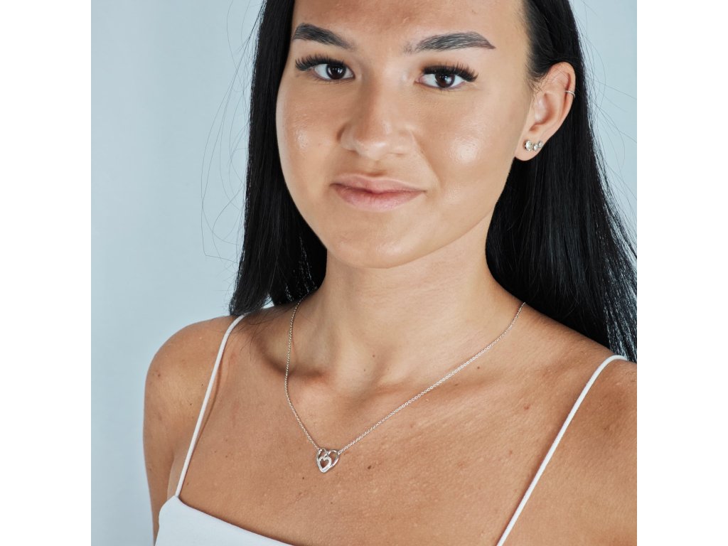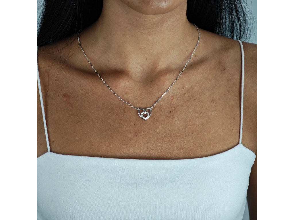 Amoris Duo je nežný náhrdelník vyrobený z rýdzeho striebra 925 s rhódiovou úpravou, ktorý symbolizuje spojenie dvoch sŕdc v jedinom harmonickom šperku.