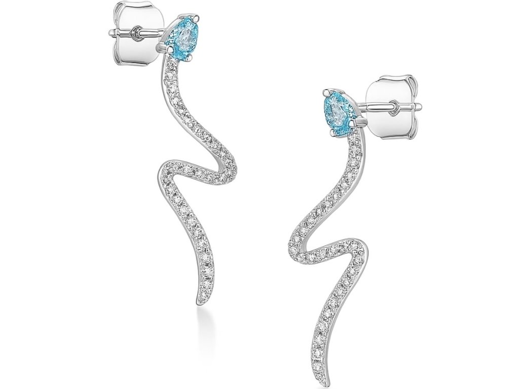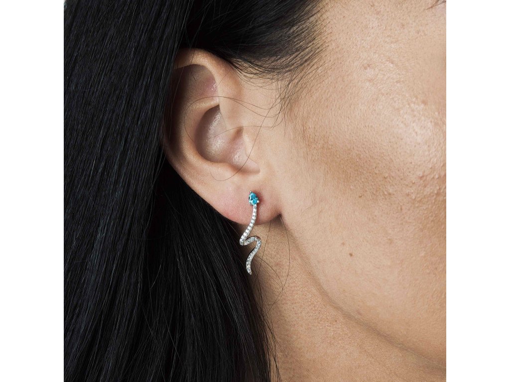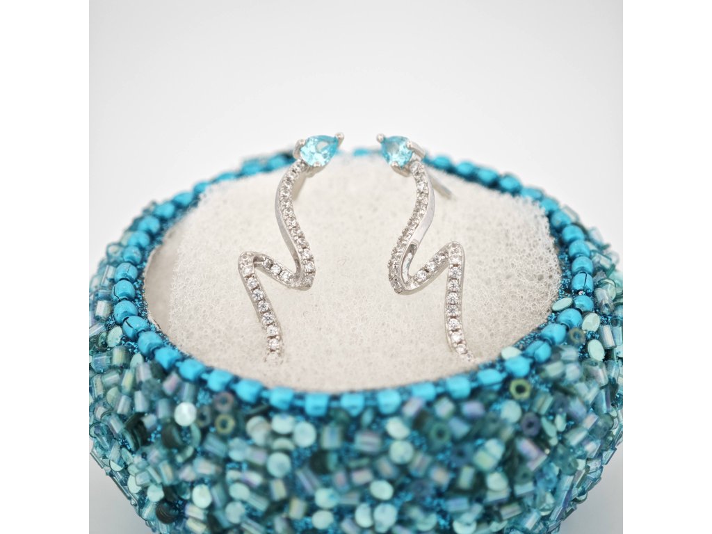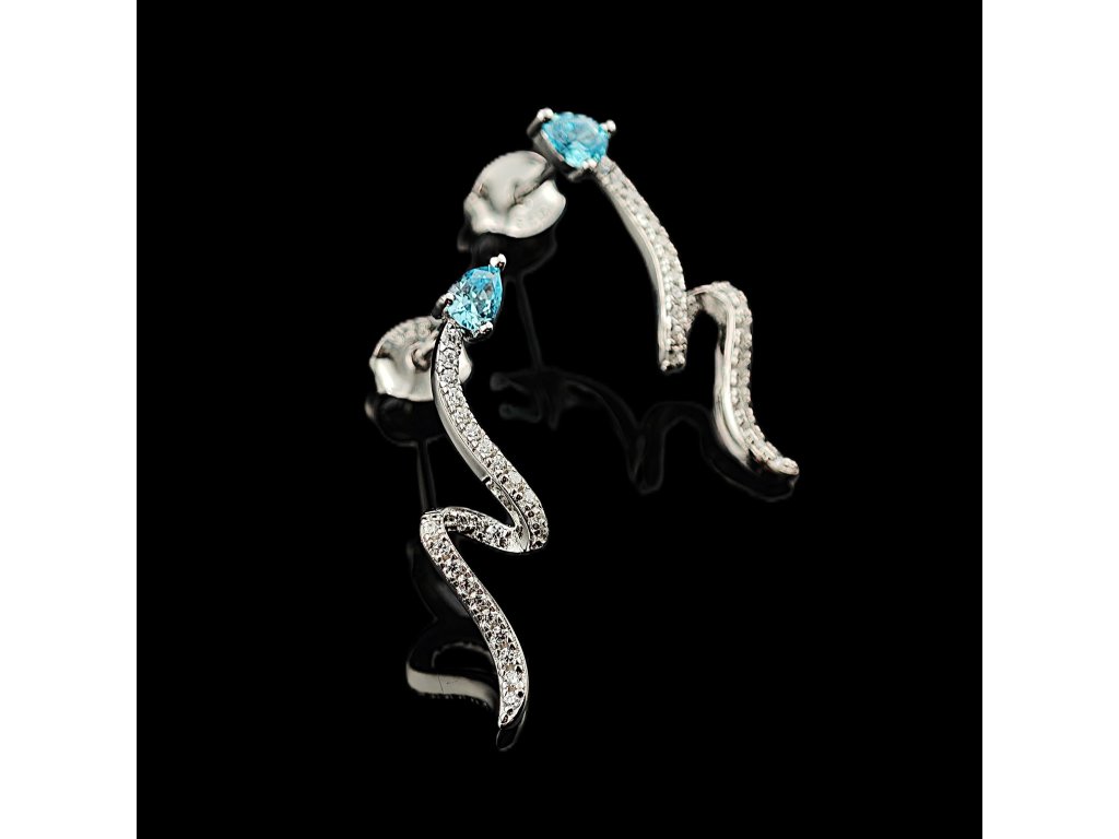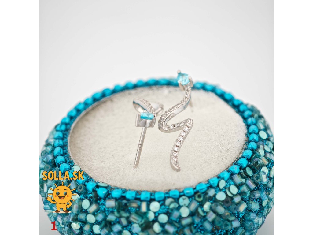 Aqua Serpentis sú náušnice zo striebra 925 s rhódiovou úpravou, zdobené zirkónmi a modrým kameňom v hruškovom bruse. Symbolizujú slobodu a ženskú silu.