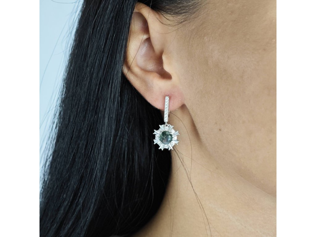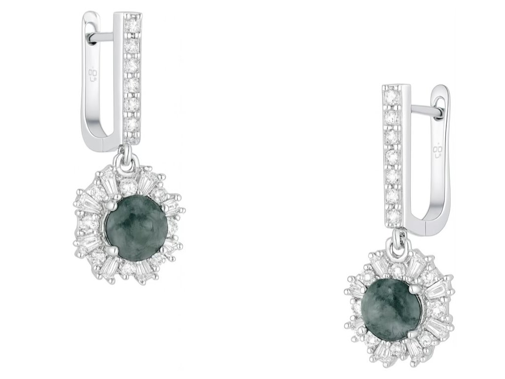 Astralis Viridis sú elegantné náušnice zo striebra 925 s unikátnym tmavozeleným kameňom a iskrivými čírymi zirkónmi. Výrazný šperk, ktorý podčiarkne Váš štýl pri špeciálnych príležitostiach.