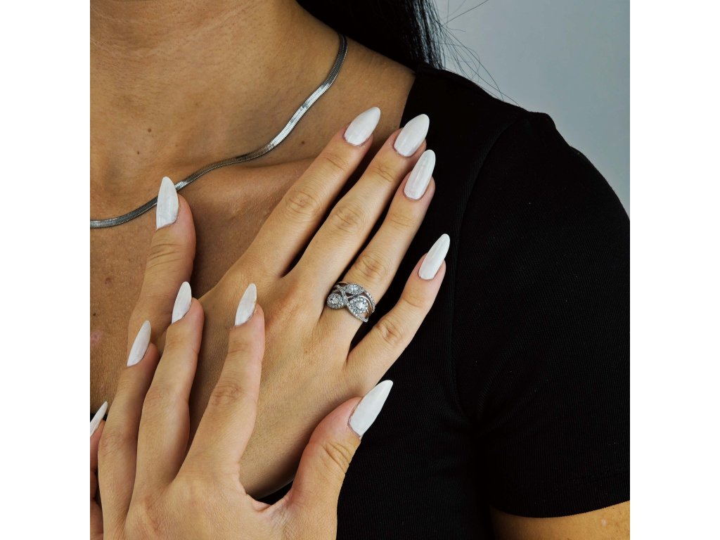 Aurora je prsteň vyrobený z pravého striebra 925 a označený puncovou pečaťou kvality. Povrchová úprava s 2-mikrónovou vrstvou rhódia bez obsahu niklu zabezpečuje dlhodobý lesk a odolnosť voči opotrebeniu.