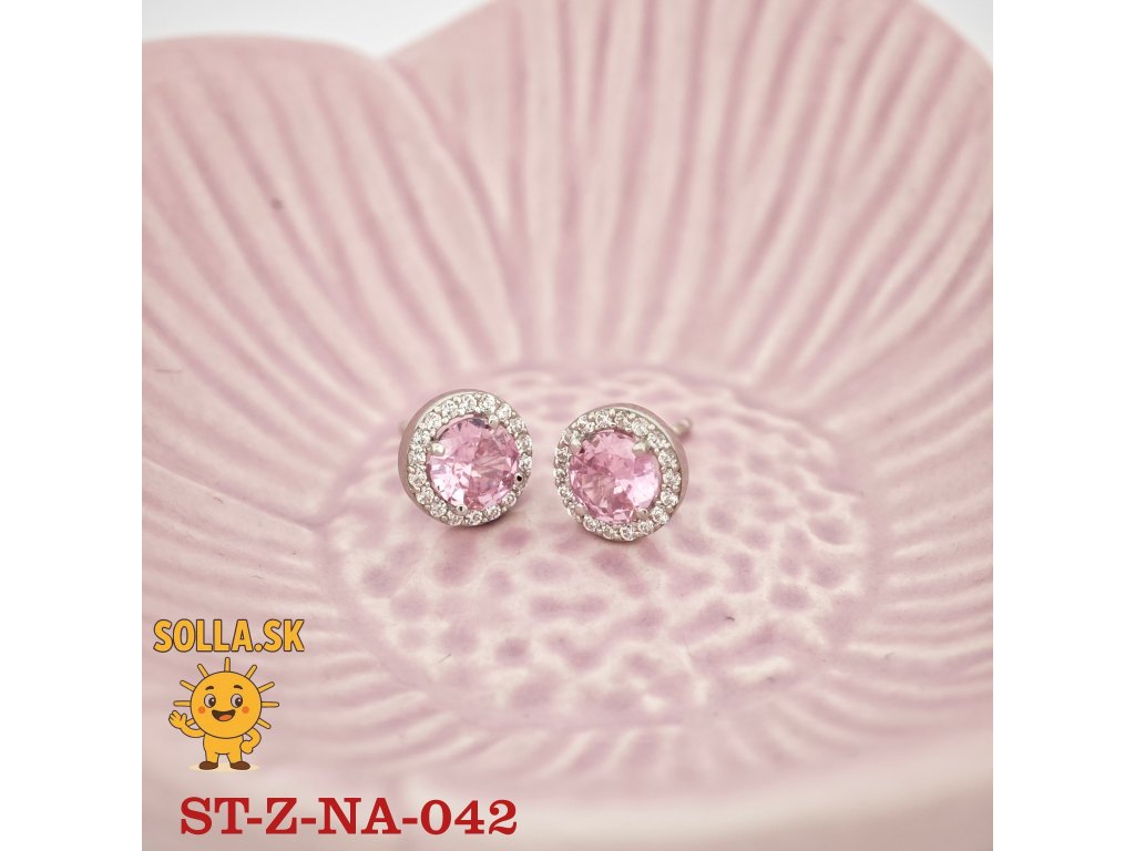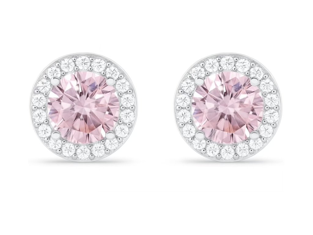 Dominantou je ružový zirkón v okrúhlom výbruse, žiariaci ako prvé lúče úsvitu na zamrznutej lúke. Okolie kameňa zdobia drobné číre zirkóny, ktoré vytvárajú efekt iskrivého objatia svetla a dodávajú šperku luxusný, éterický vzhľad.