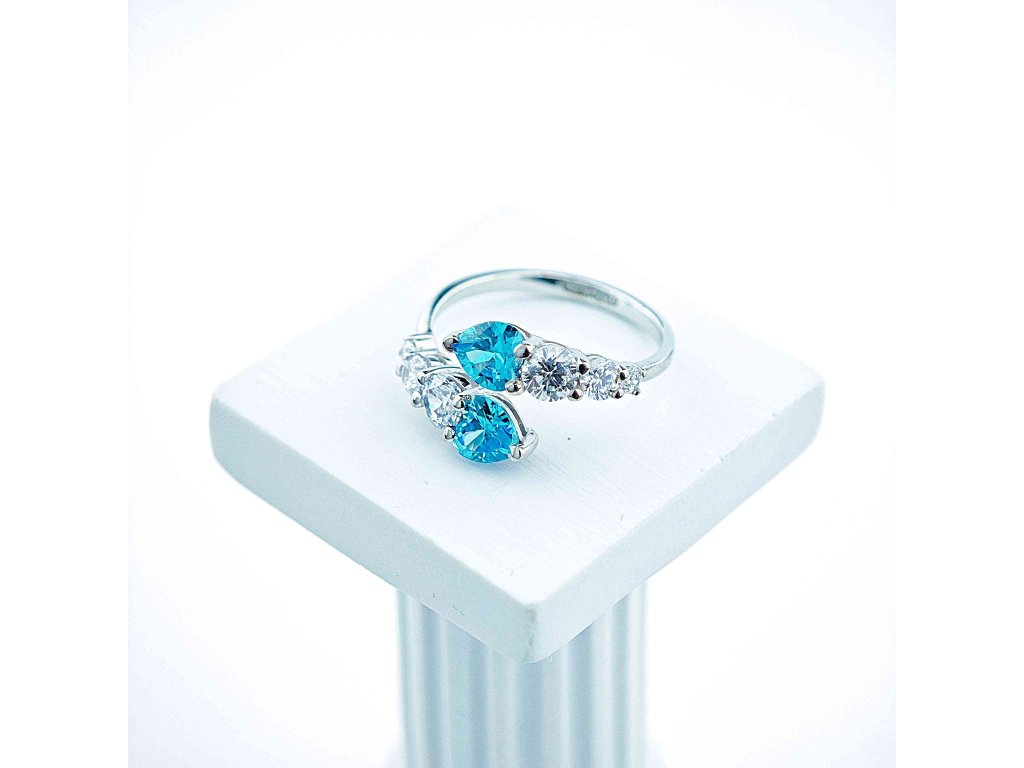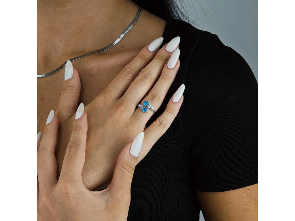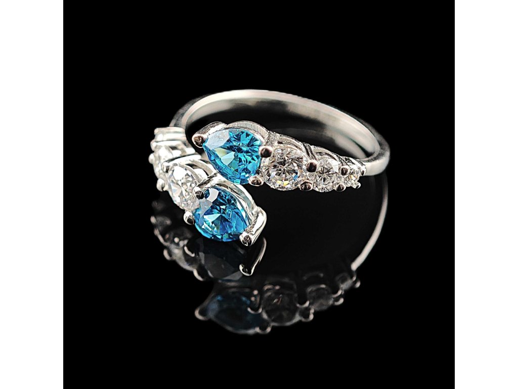 Dominantou prsteňa je srdiečko osadené výnimočne brúsenou švajčiarskou zirkóniou s azúrovým odtieňom, ktorej lesk pripomína diamant – žiarivý, jasný a takmer nerozoznateľný ani pre odborníkov.
