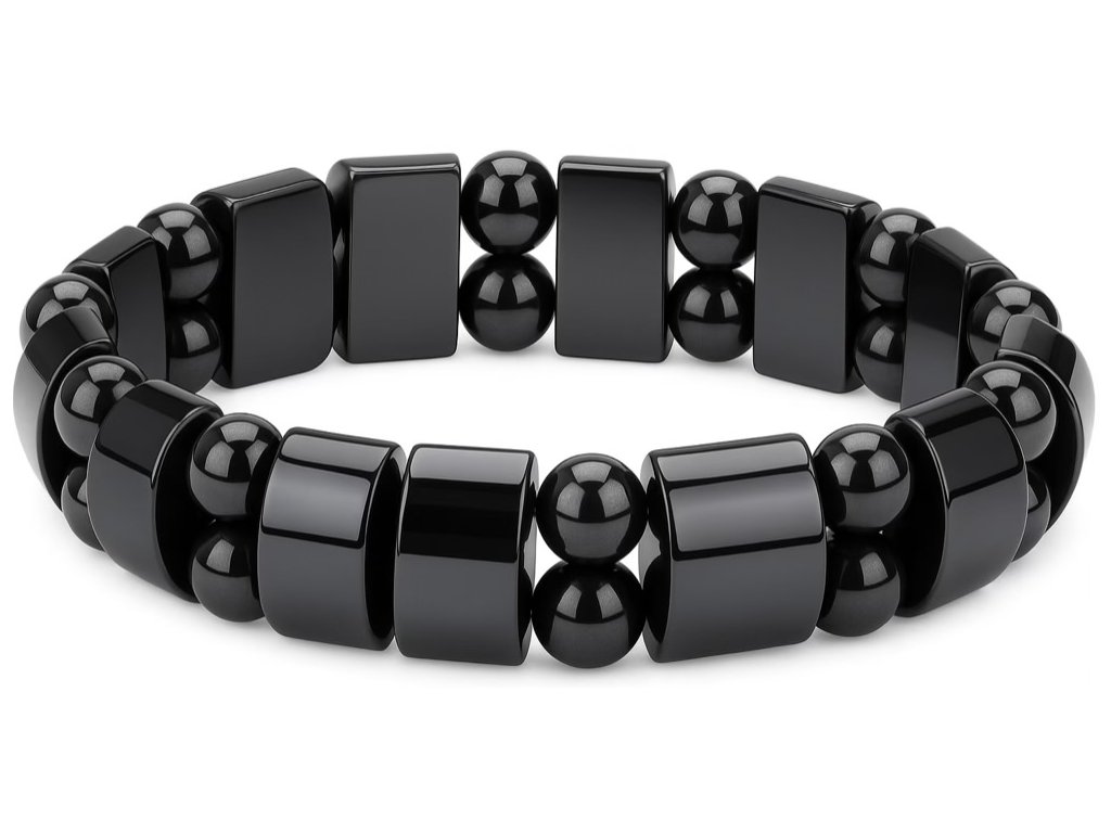 Čierny kovový lesk hematitu pôsobí luxusne, no zároveň decentne. Hranaté články pridávajú moderný geometrický vzhľad, ktorý sa hodí k akémukoľvek štýlu – od ležérneho až po elegantný. Náramok je navlečený na pružnej gumičke, vďaka čomu sa pohodlne prispôsobí zápästiu a je vhodný pre každodenné nosenie.
