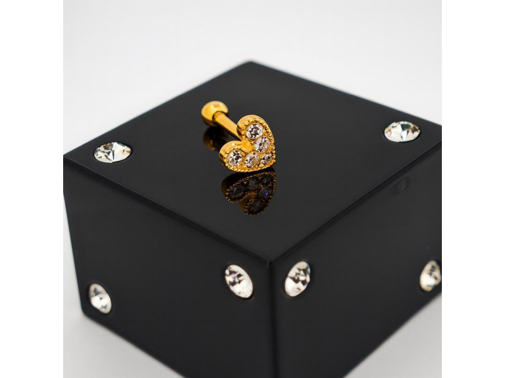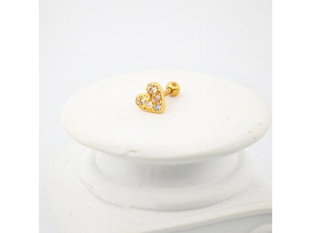 Heart Sparkle je dámska náušnica vyrobená z chirurgickej ocele 316L so zlatou PVD úpravou. Dizajn v tvare srdca dopĺňa päť čírych kryštálov, ktoré vytvárajú jemný dekoratívny prvok.