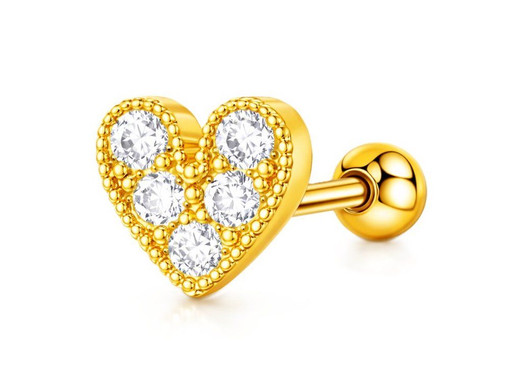 Leštený zlatý povrch zvýrazňuje tvar náušnice a dodáva jej elegantný vzhľad. Kryštály sú osadené na prednej časti srdca a pri dopade svetla vytvárajú jemný svetelný efekt, ktorý dopĺňa minimalistický dizajn.