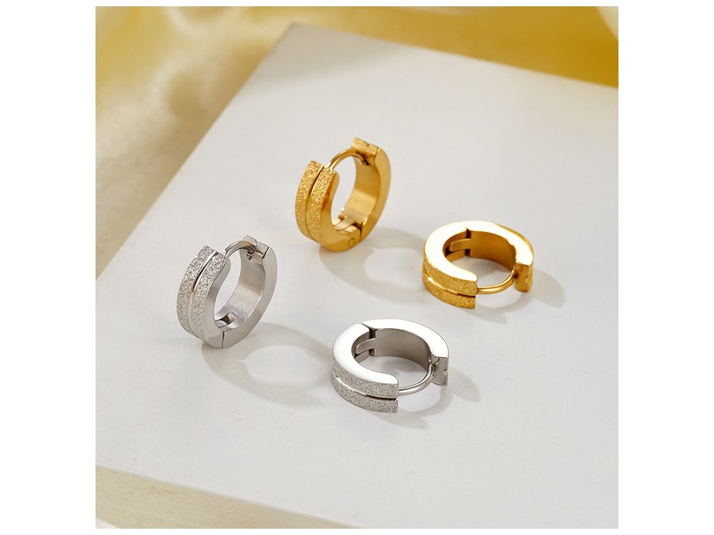 Elegantné kruhové náušnice z chirurgickej ocele s jemným brúseným efektom pre trblietavý vzhľad.