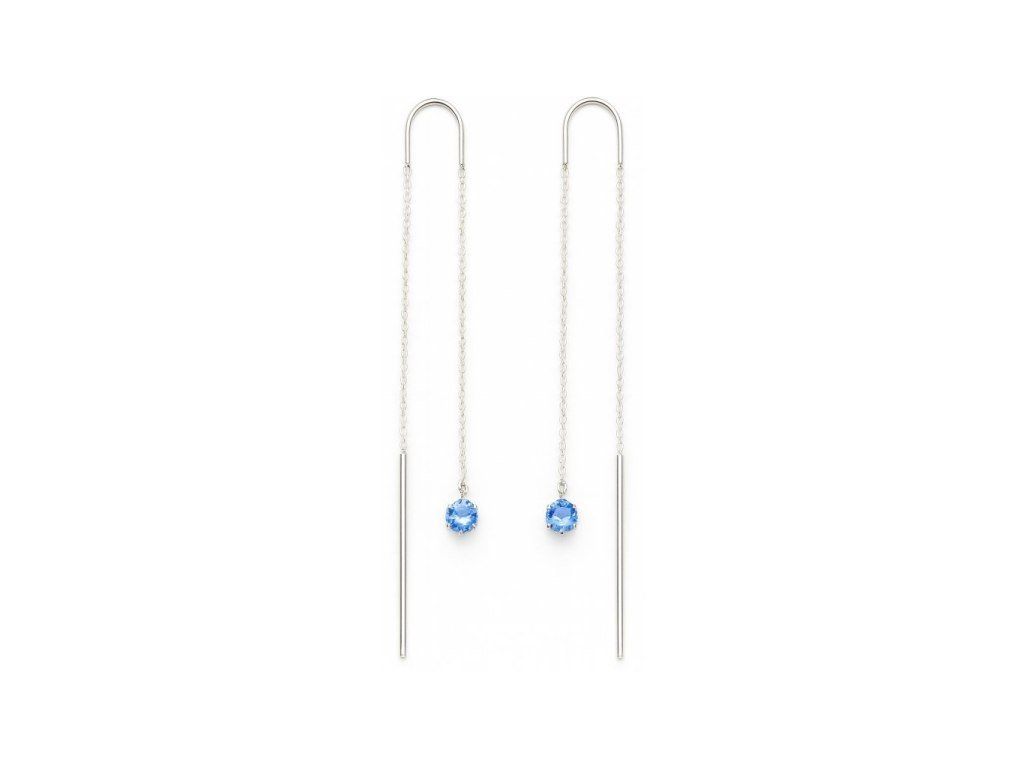 Elegantné retiazkové náušnice s modrým zirkónom a minimalistickou tyčinkou.