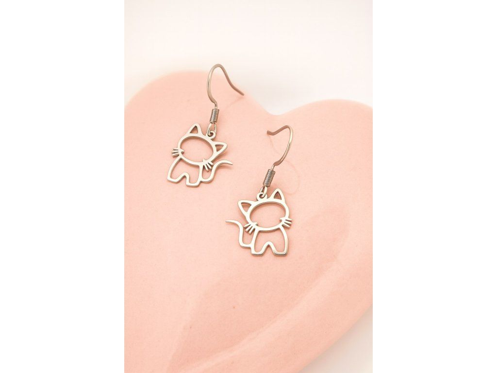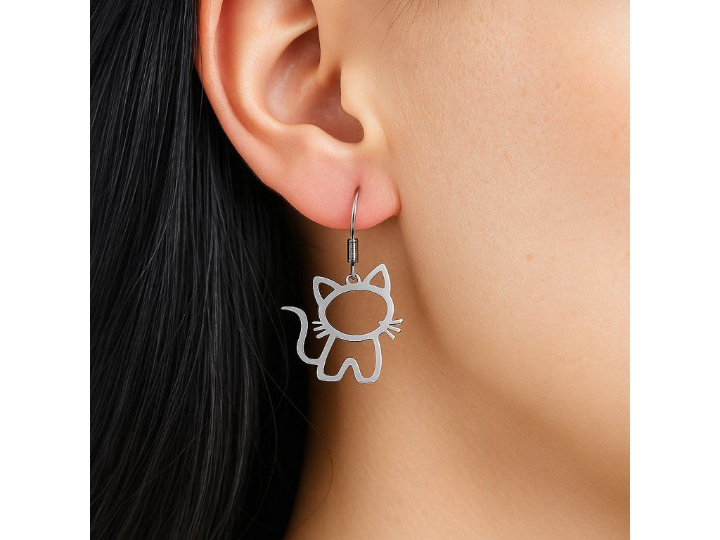 Cute Cat sú dámske náušnice vyrobené z chirurgickej ocele 316L. Dizajn v tvare mačky pôsobí hravo a zároveň minimalisticky, vďaka čomu sa hodí na každodenné nosenie.