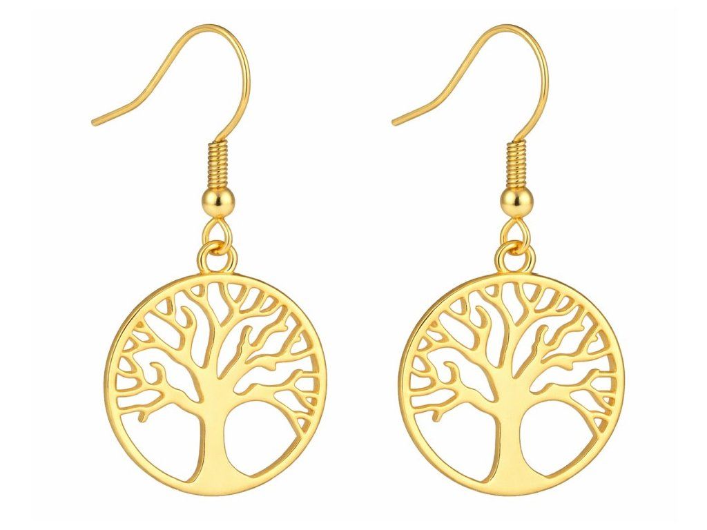 Zlaté náušnice so symbolom stromu života, ktorý predstavuje silu, rast a rovnováhu.