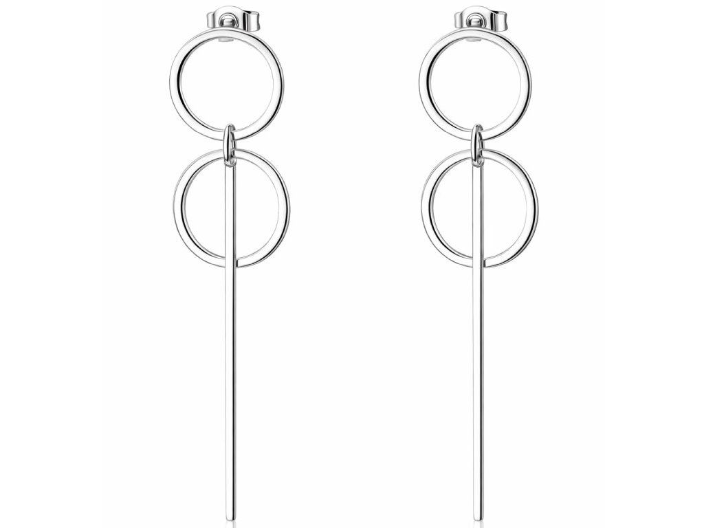 Geometric Lines sú dámske náušnice vyrobené z chirurgickej ocele 316L. Dizajn tvoria dva prepojené kruhy doplnené o vertikálnu líniu, ktorá vytvára moderný a geometricky čistý vzhľad.