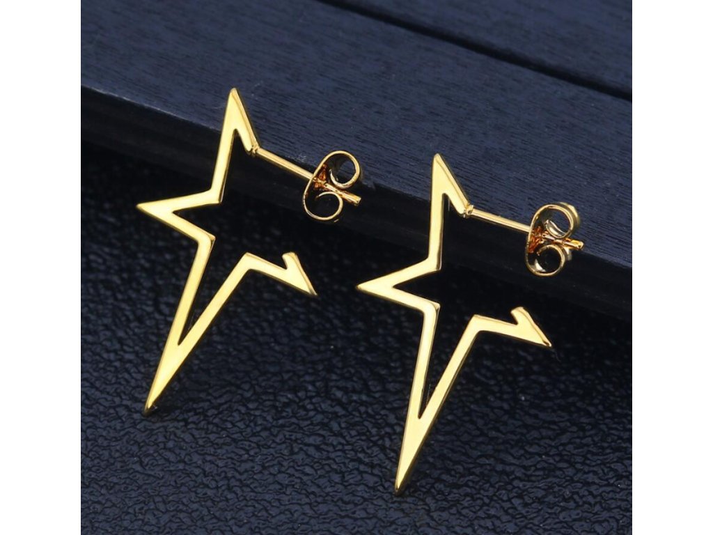 Moderné náušnice v tvare hviezdy zo zlatej chirurgickej ocele – odvážny doplnok pre výnimočný vzhľad.