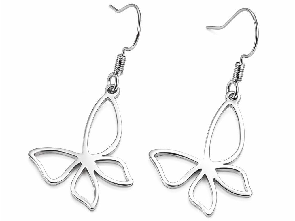 Ľahké a vzdušné náušnice z chirurgickej ocele v tvare motýľa pre jemný a romantický vzhľad.