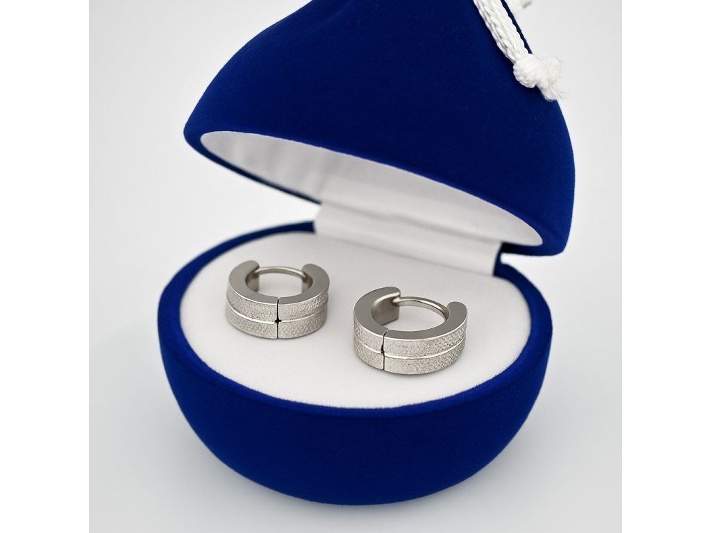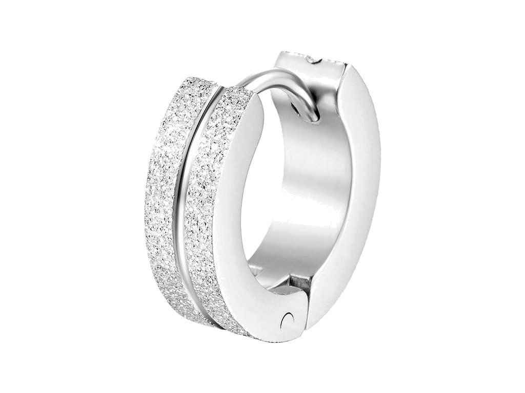 Elegantné kruhové náušnice z chirurgickej ocele s jemným brúseným efektom pre trblietavý vzhľad.