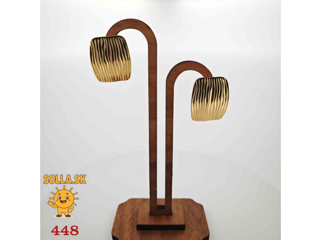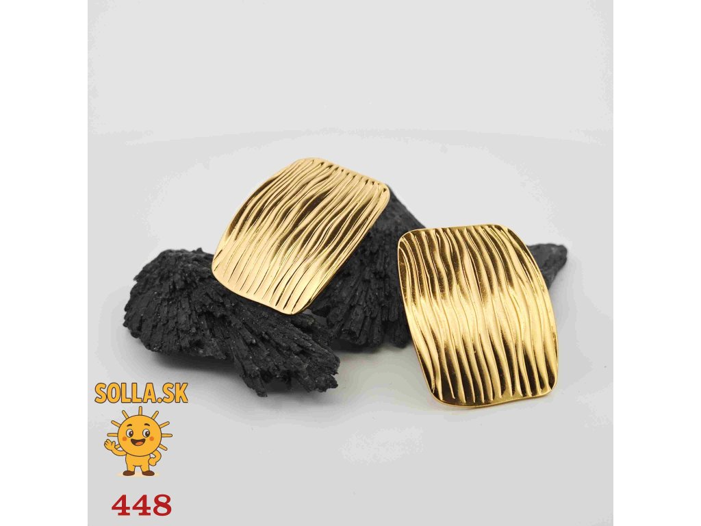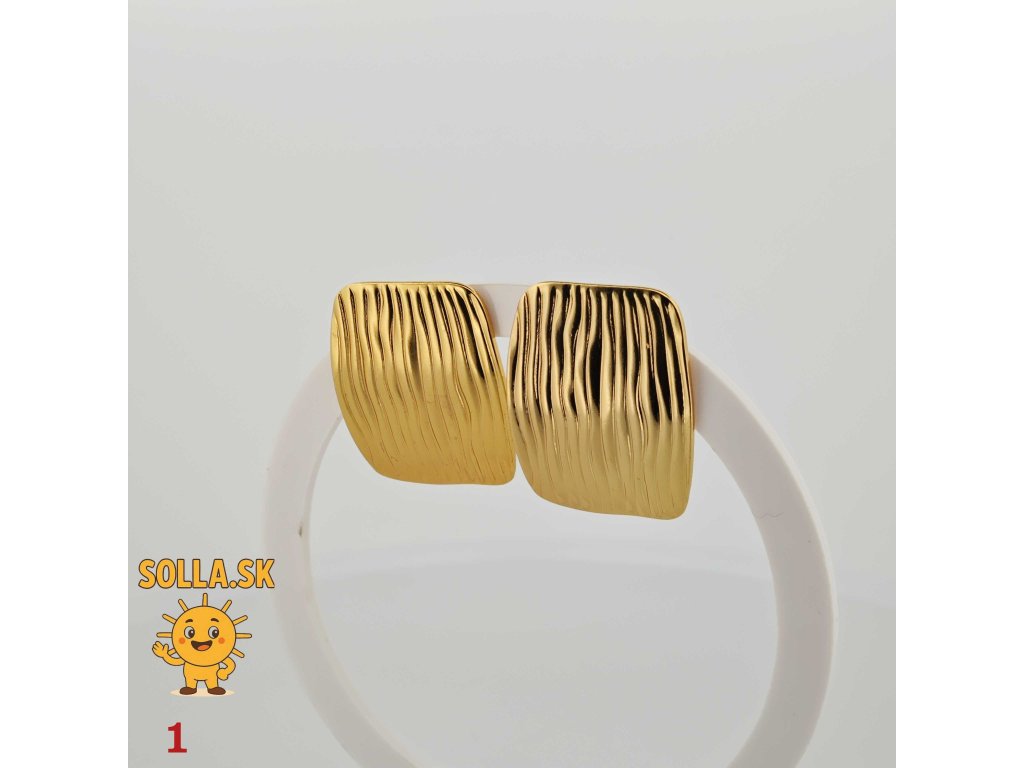 Elegantné náušnice zo zlatej chirurgickej ocele s jemným vlnkovým povrchom – moderný doplnok pre každú príležitosť.