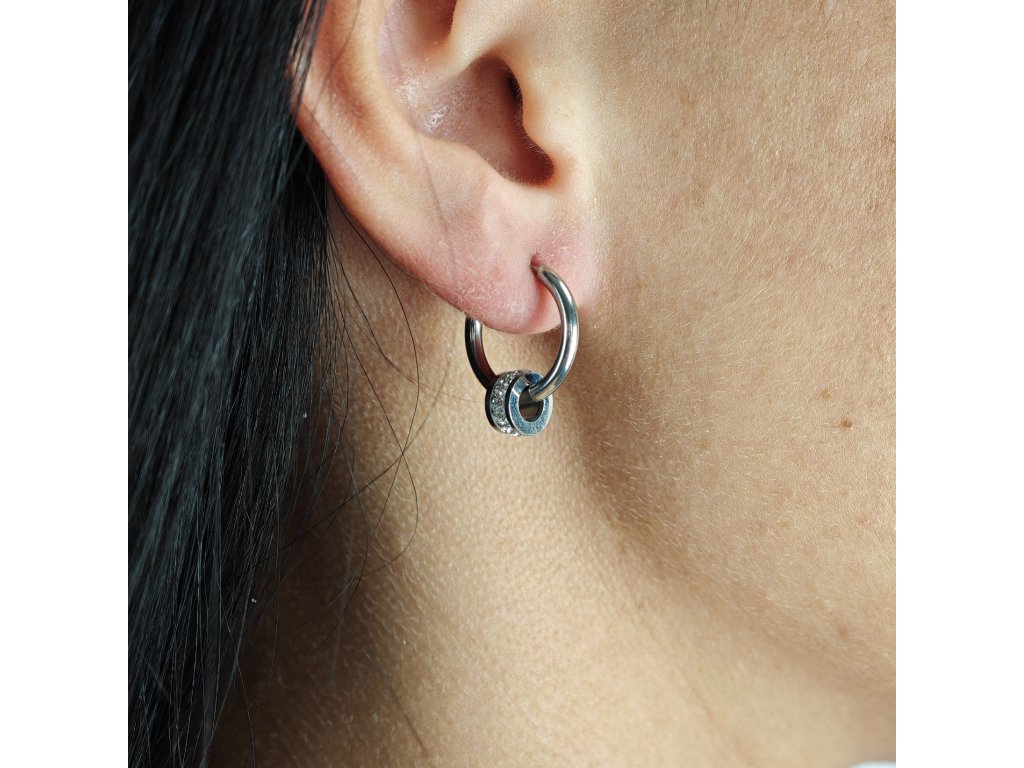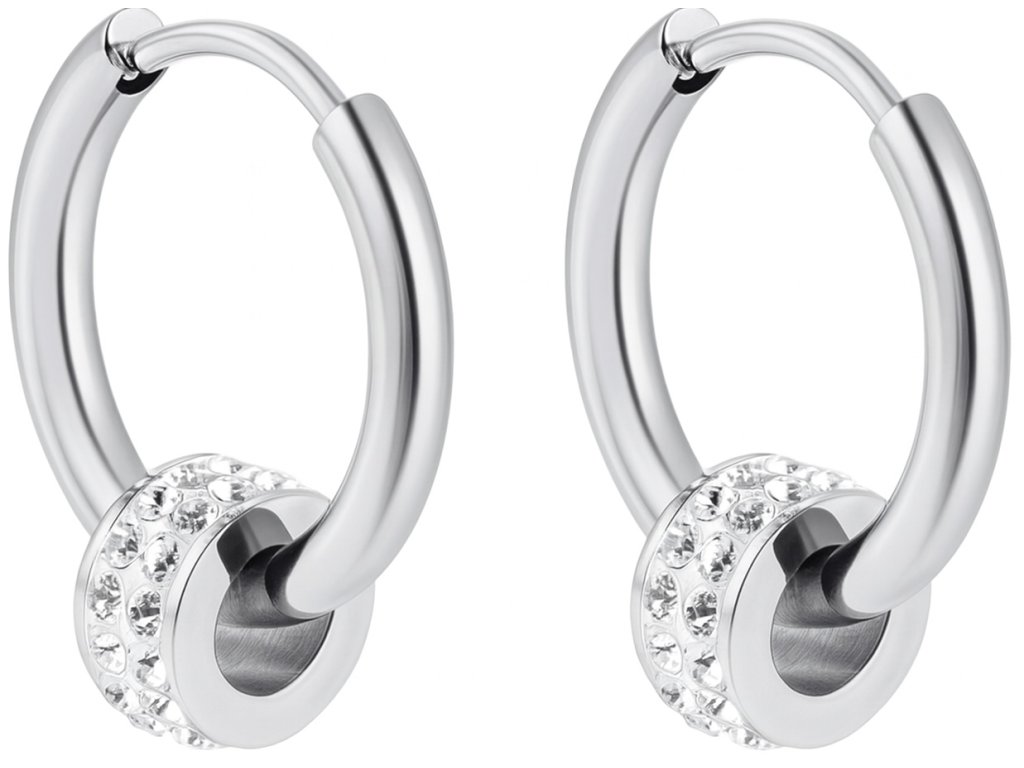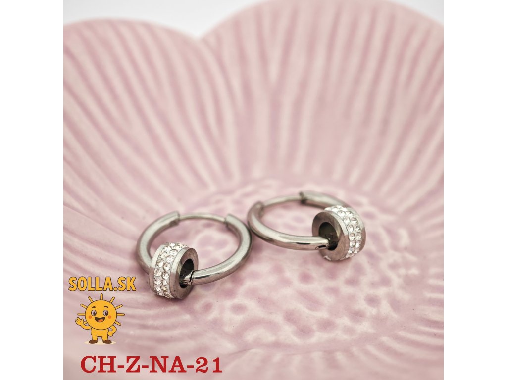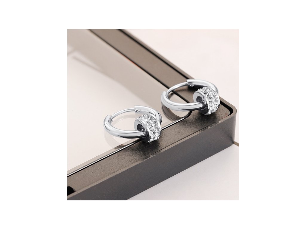 Elegantné kruhové náušnice z chirurgickej ocele s lesklými krištáľmi pre žiarivý a moderný vzhľad.