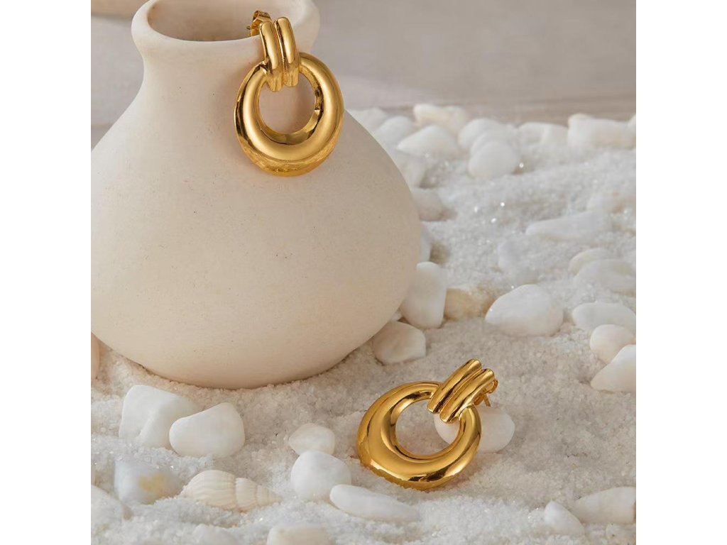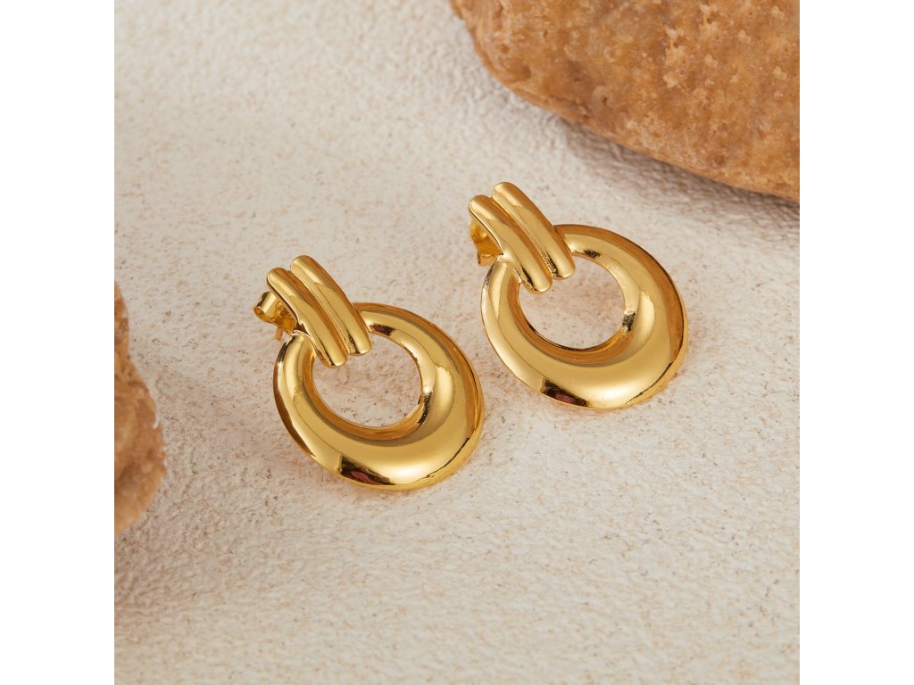 Elegantné pozlátené náušnice z chirurgickej ocele v modernom kruhovom dizajne pre nadčasový vzhľad.