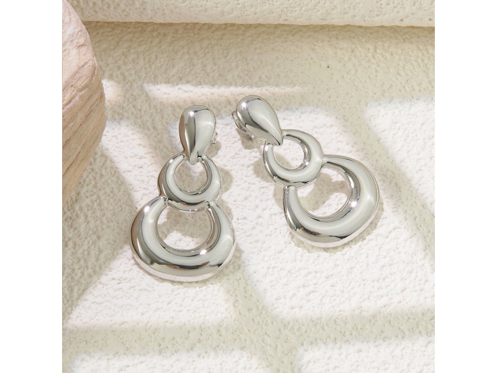 Moderné náušnice z chirurgickej ocele s dvojitými kruhovými detailmi pre elegantný a nadčasový vzhľad.