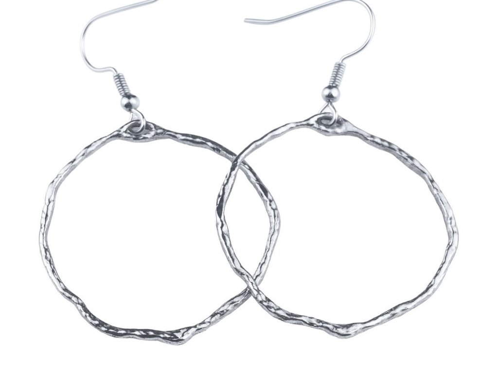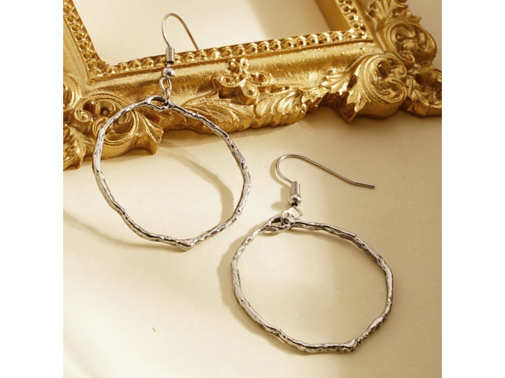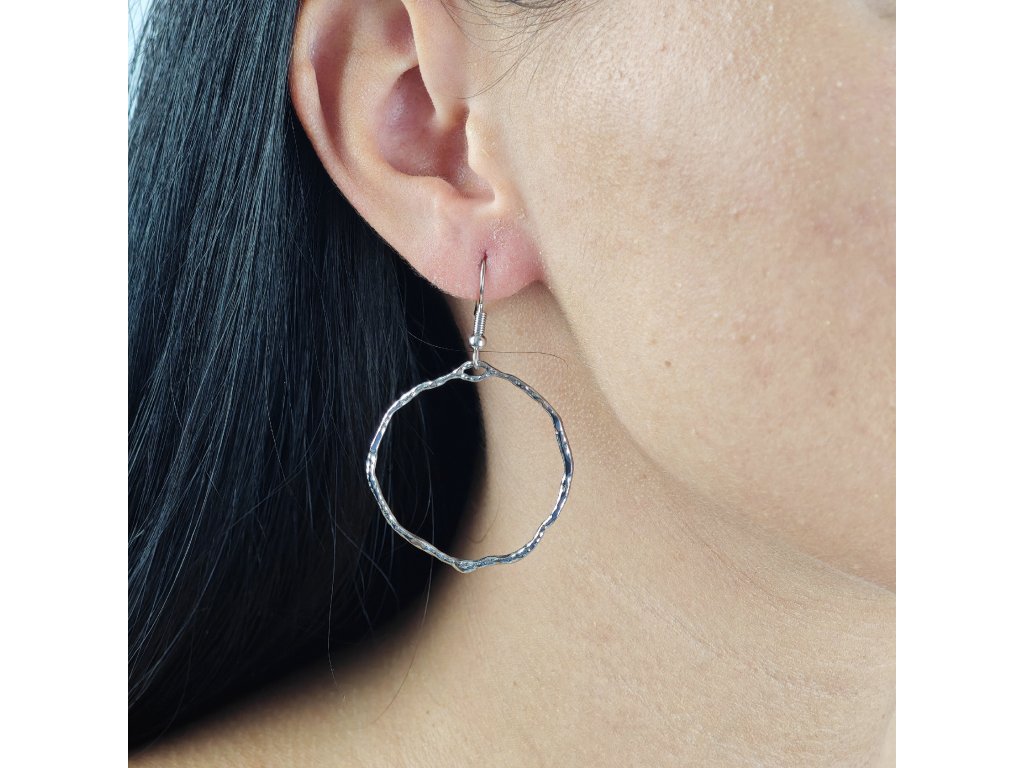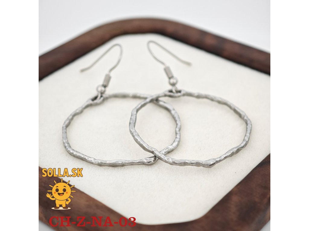 Veľké kruhové náušnice s nepravidelným povrchom z chirurgickej ocele – bohémsky štýl v elegantnom prevedení.