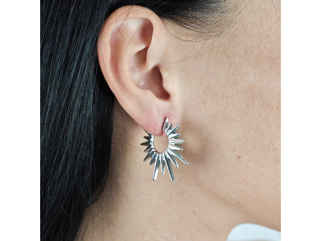 Dámske náušnice z chirurgickej ocele v tvare slnečných lúčov – Sunburst sú šperkom, ktorý okamžite pritiahne pozornosť.