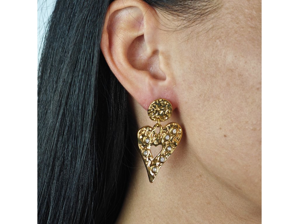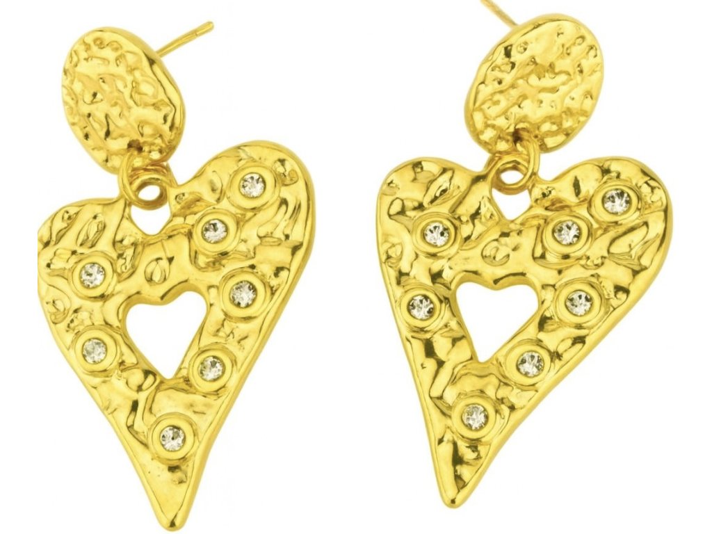 Výrazné náušnice zo zlatej chirurgickej ocele v tvare srdca s kryštálmi – romantický šperk, ktorý neprehliadne nikto.