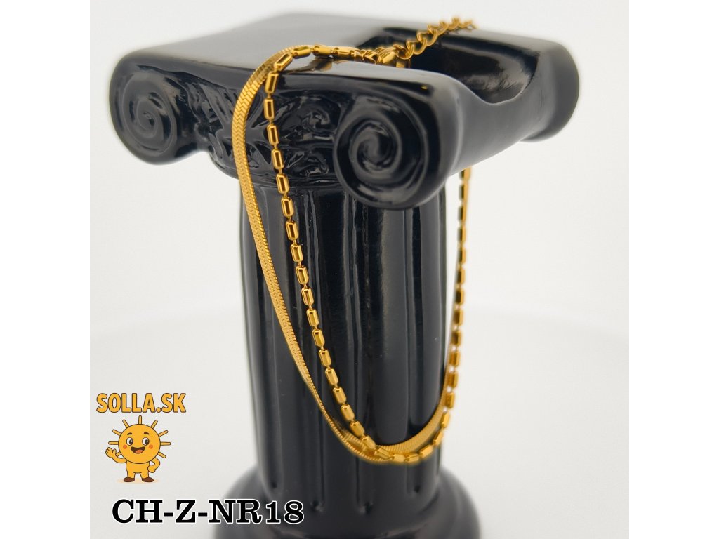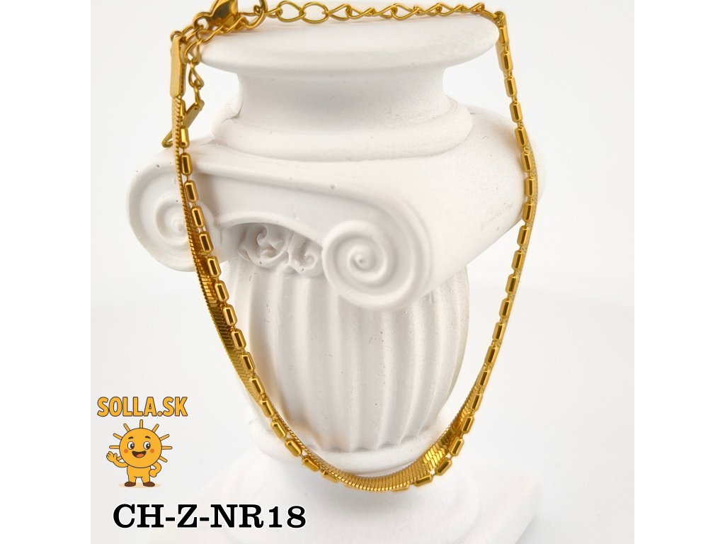 Hladká hadia retiazka dodáva lesk a sofistikovanosť, zatiaľ čo jemný článkový vzor prináša šperku hravý nádych.