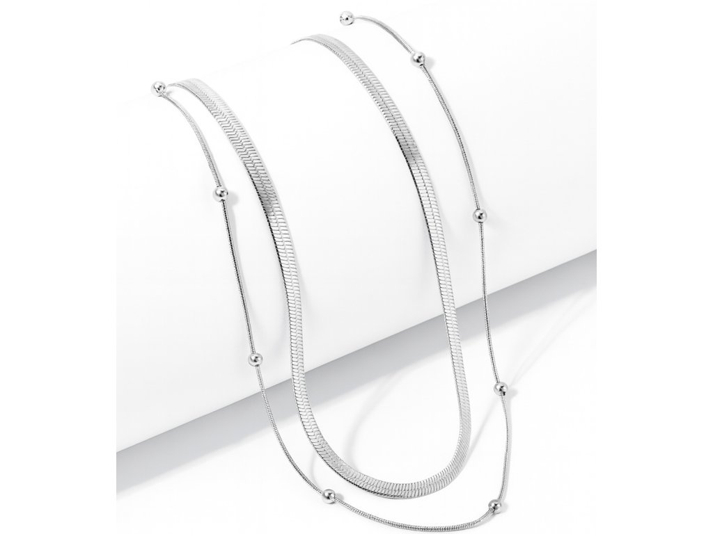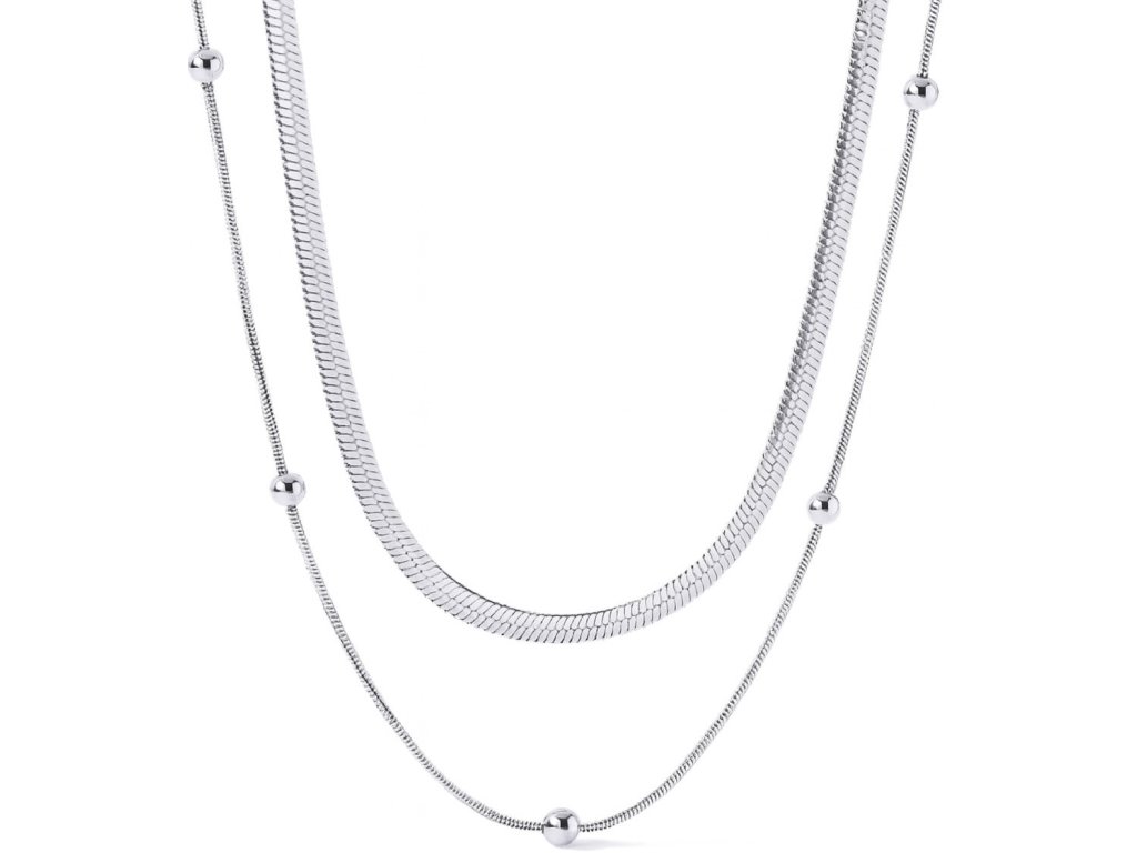 Dvojitý náhrdelník z chirurgickej ocele s hadím vzorom a guľôčkami – elegantný, moderný a vrstvený šperk.