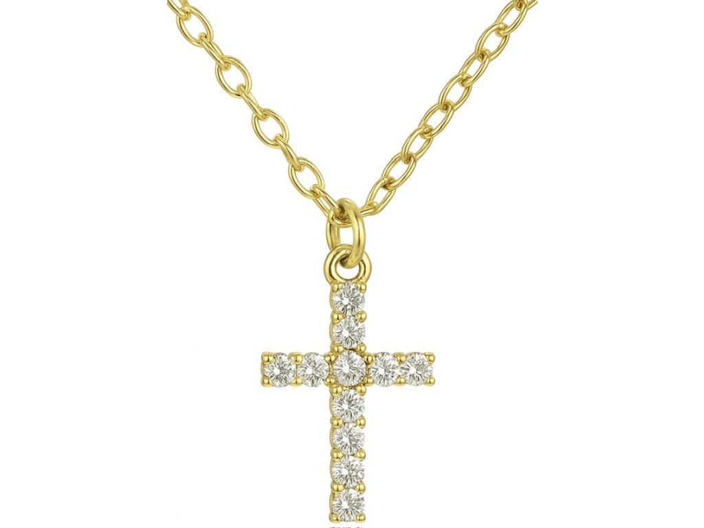 Elegantný zlatý náhrdelník s krížikom zdobeným zirkónmi predstavuje spojenie viery, luxusu a nadčasovej elegancie. Dokonalý doplnok pre ženu, ktorá verí v krásu detailu.