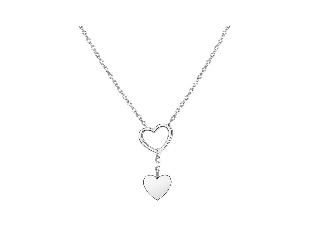 Otvorené srdce má hladký, lesklý povrch a jednoduché spracovanie bez zdobenia. Doplňujúci visiaci prívesok pridáva nenápadný dekoratívny prvok, vďaka ktorému náhrdelník pôsobí ľahko a uhladene. Dizajn je vhodný na samostatné nosenie aj kombinovanie s ďalšími šperkami.