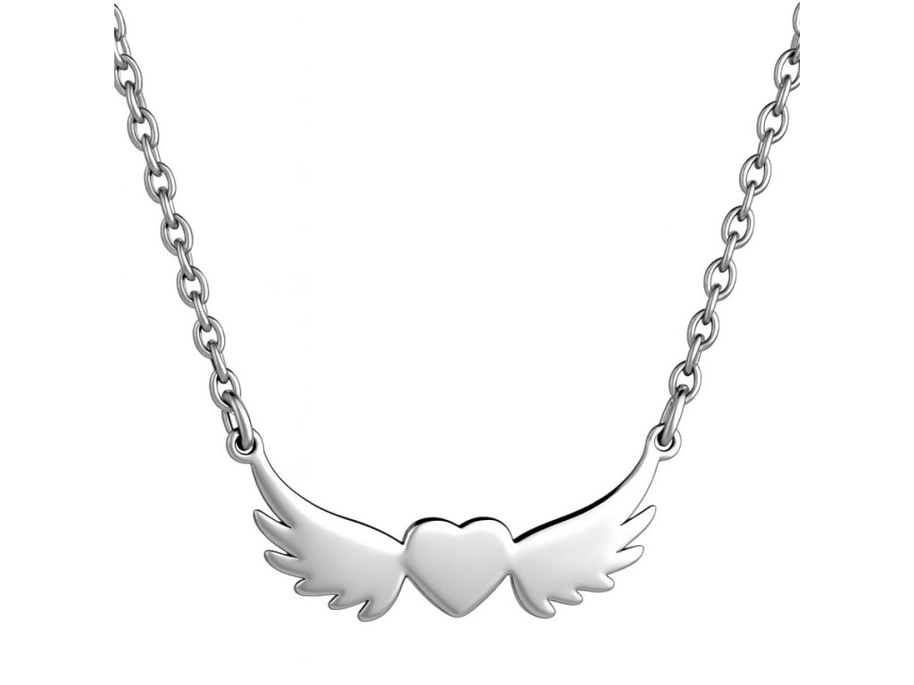 Elegantný náhrdelník z chirurgickej ocele s motívom srdca a krídel – symbol lásky, slobody a ochrany.