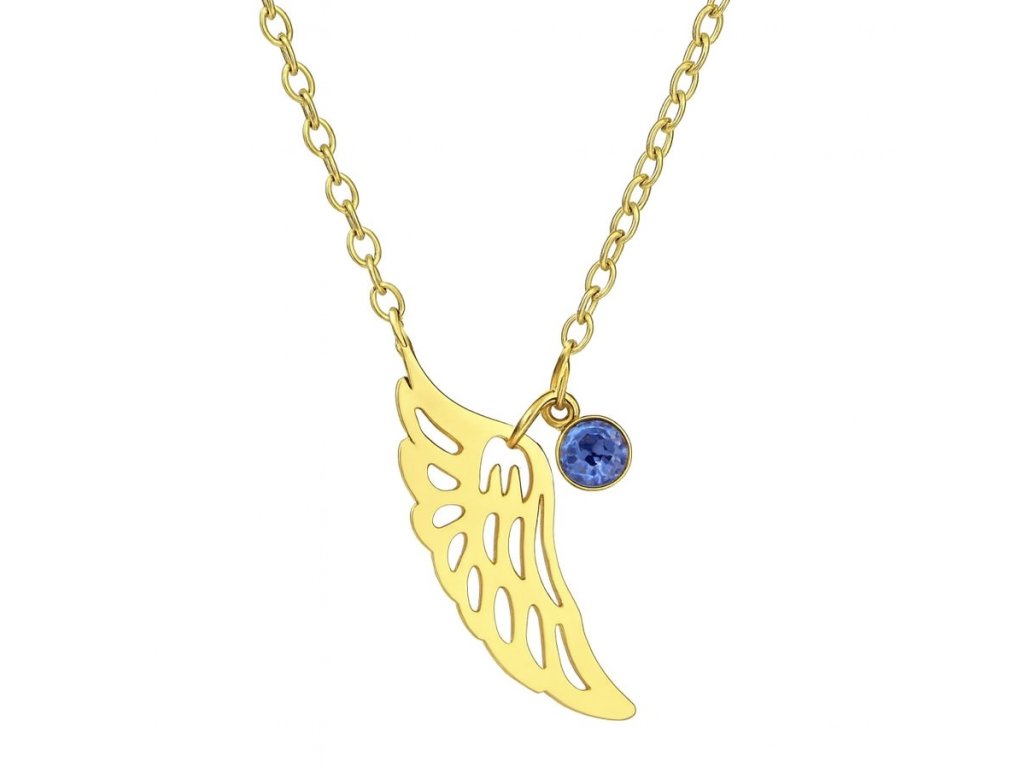 Zlatý náhrdelník s anjelským krídlom a farebným kamienkom – symbol ženskosti, ochrany a jemnej elegancie.