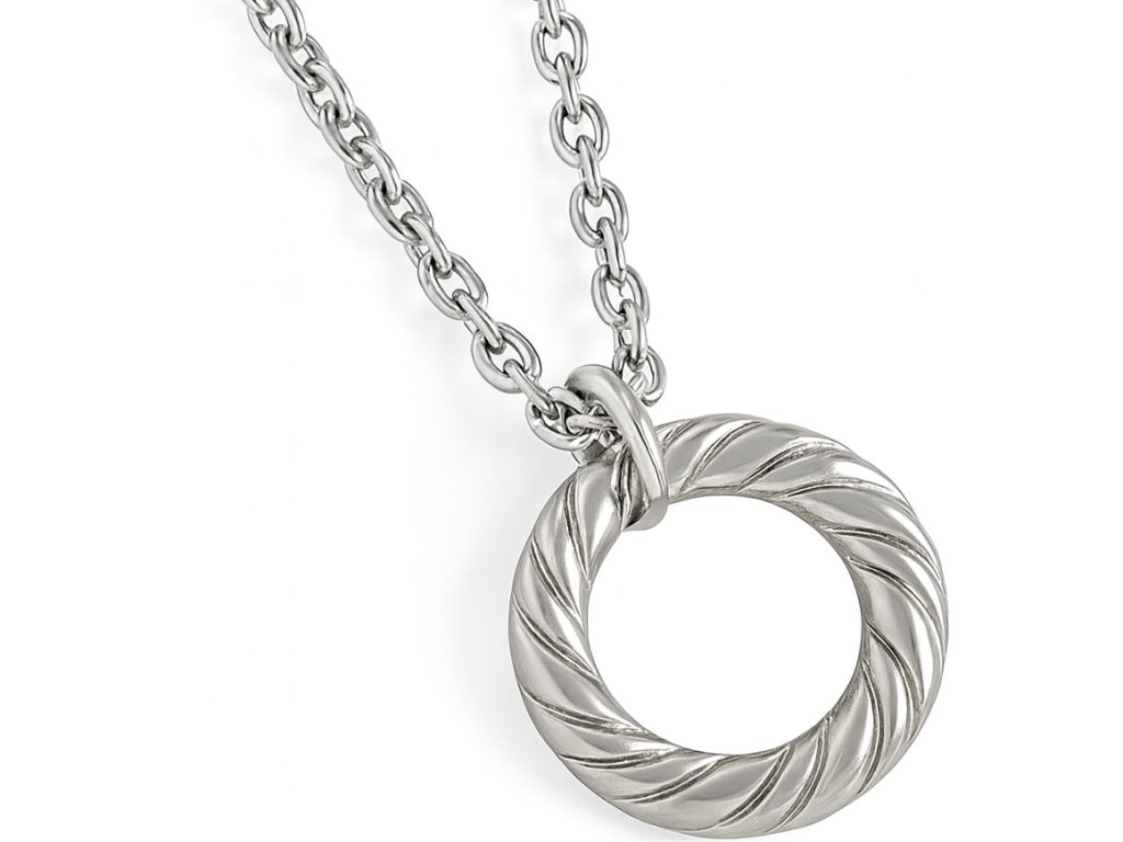 Kruhový prívesok zdobí jemný gravírovaný vzor, ktorý mu dodáva jedinečný vzhľad. Tento nadčasový doplnok sa skvele hodí k ležérnemu aj elegantnému štýlu.