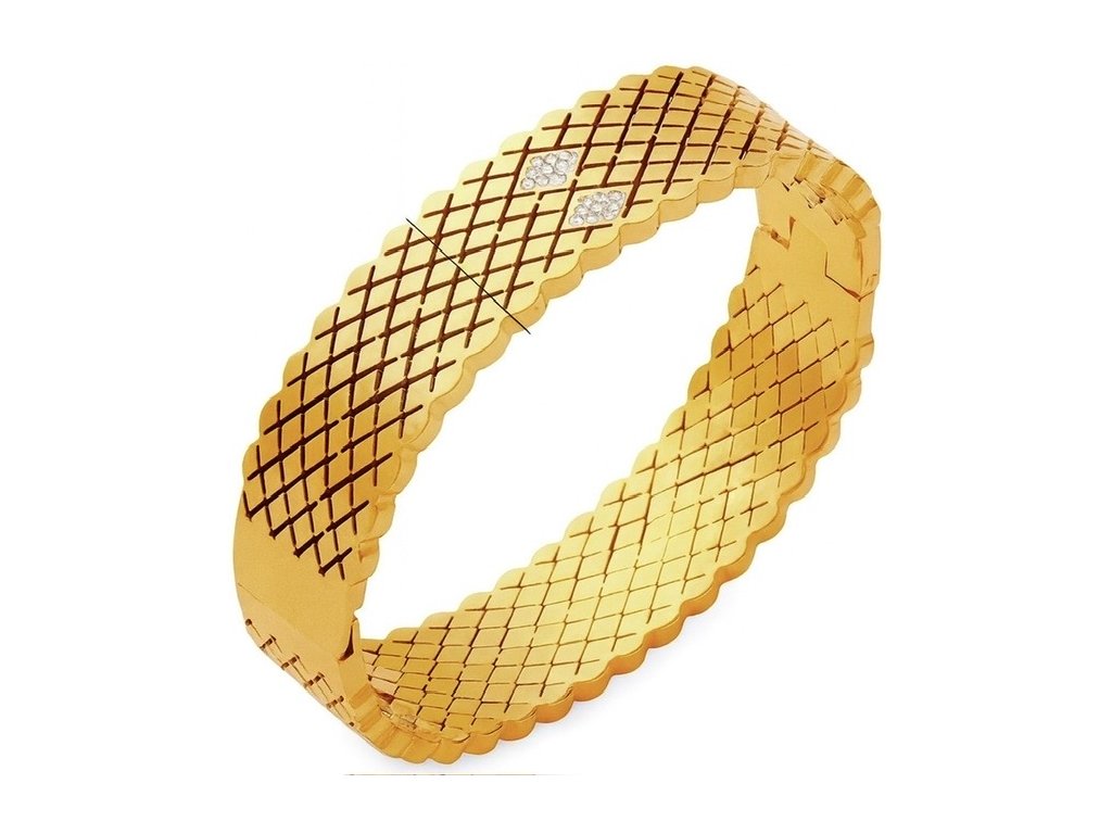 Aurum Grace je elegantný dámsky náramok z chirurgickej ocele pozlátený 18K zlatom. Jeho jemný geometrický vzor v sebe spája ženskosť, noblesu a nadčasový štýl.