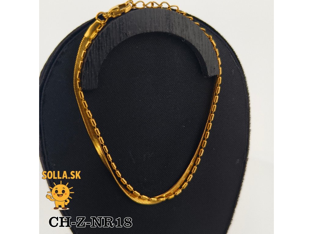 Elegantný dvojitý pozlátený náramok z chirurgickej ocele kombinujúci hadí a článkový vzor pre moderný vzhľad.
