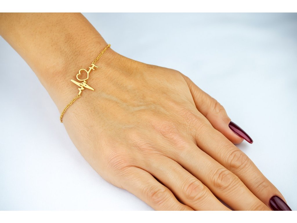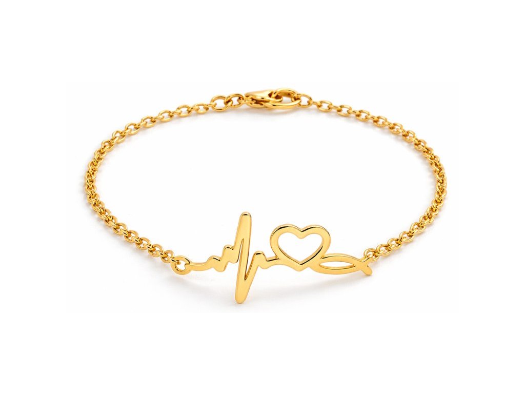Jemný pozlátený náramok s motívom srdca a pulzu – symbol lásky a života.