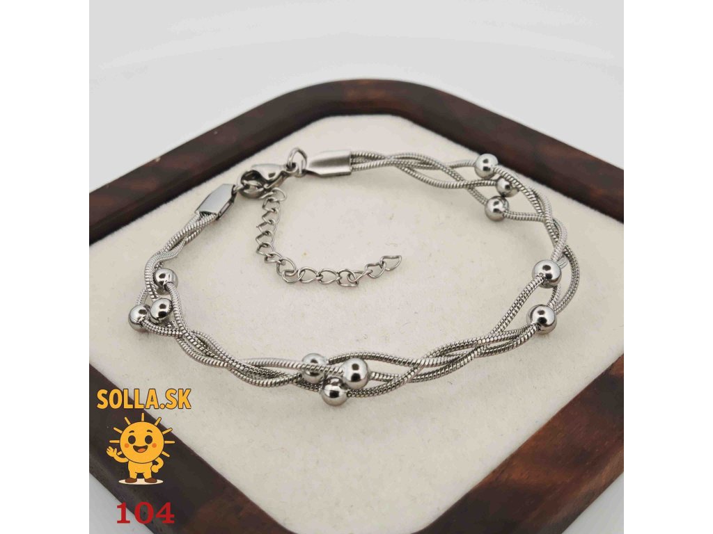 Strieborný náramok z chirurgickej ocele s prepletenými retiazkami a guľôčkami – jemný, moderný a ľahko kombinovateľný.
