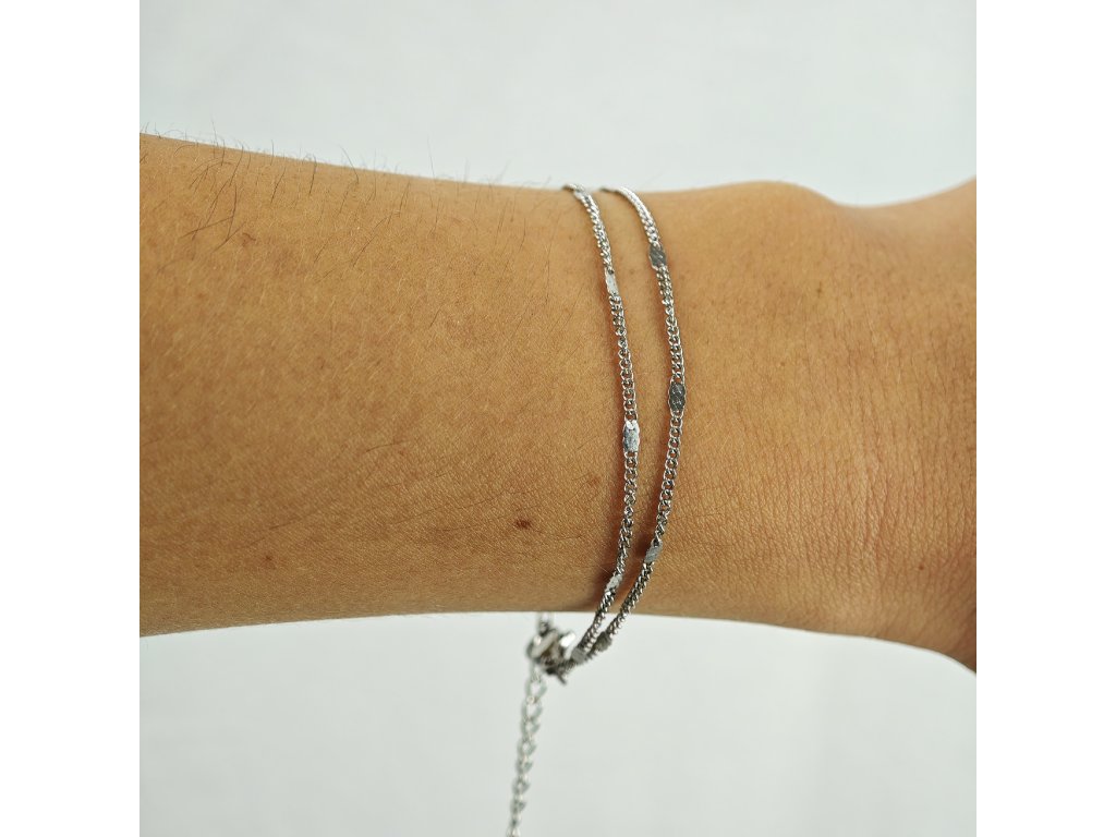Štýlový dámsky náramok z dvojitej retiazky z chirurgickej ocele s nastaviteľnou dĺžkou.