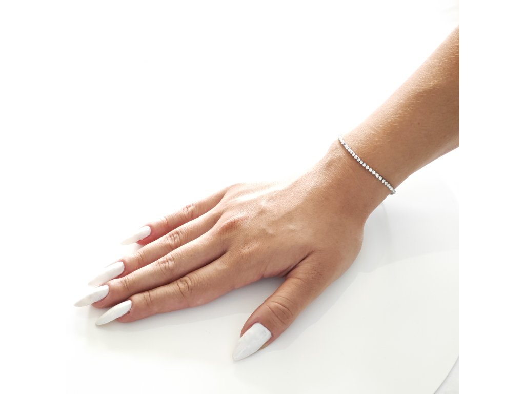Luxusný strieborný náramok s radom čírych zirkónov – nadčasová elegancia a jemný lesk pre každý deň.