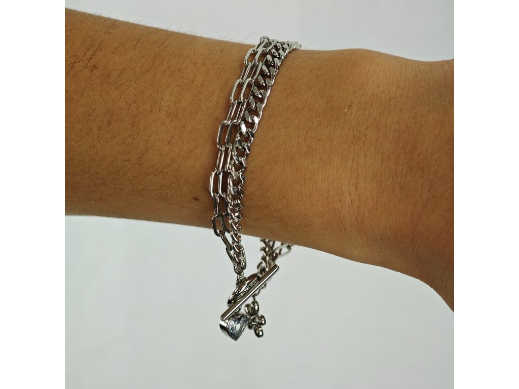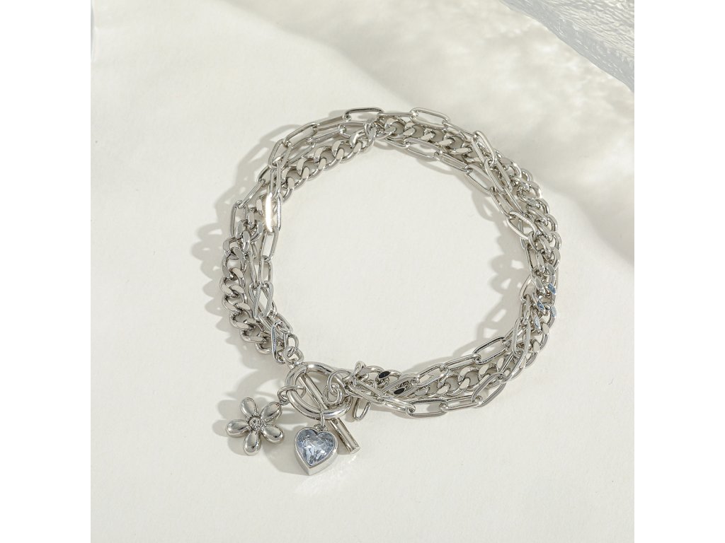 Štýlový náramok z chirurgickej ocele s príveskom srdca a kvetu pre romantický a ženský vzhľad.