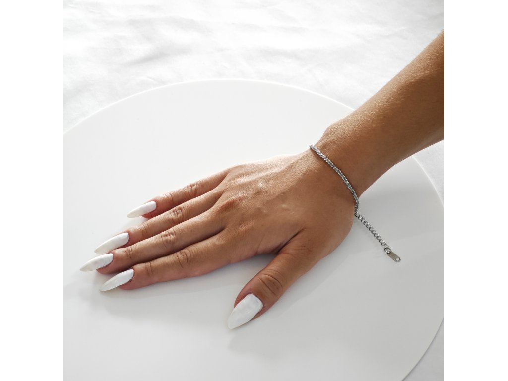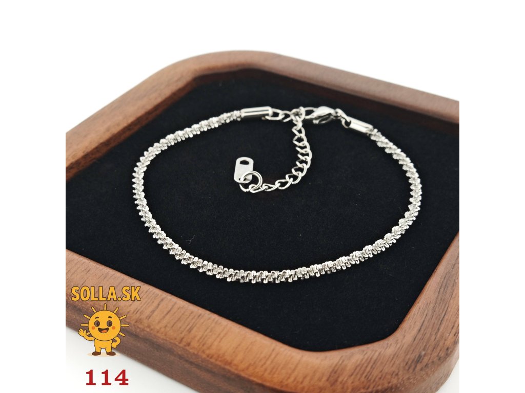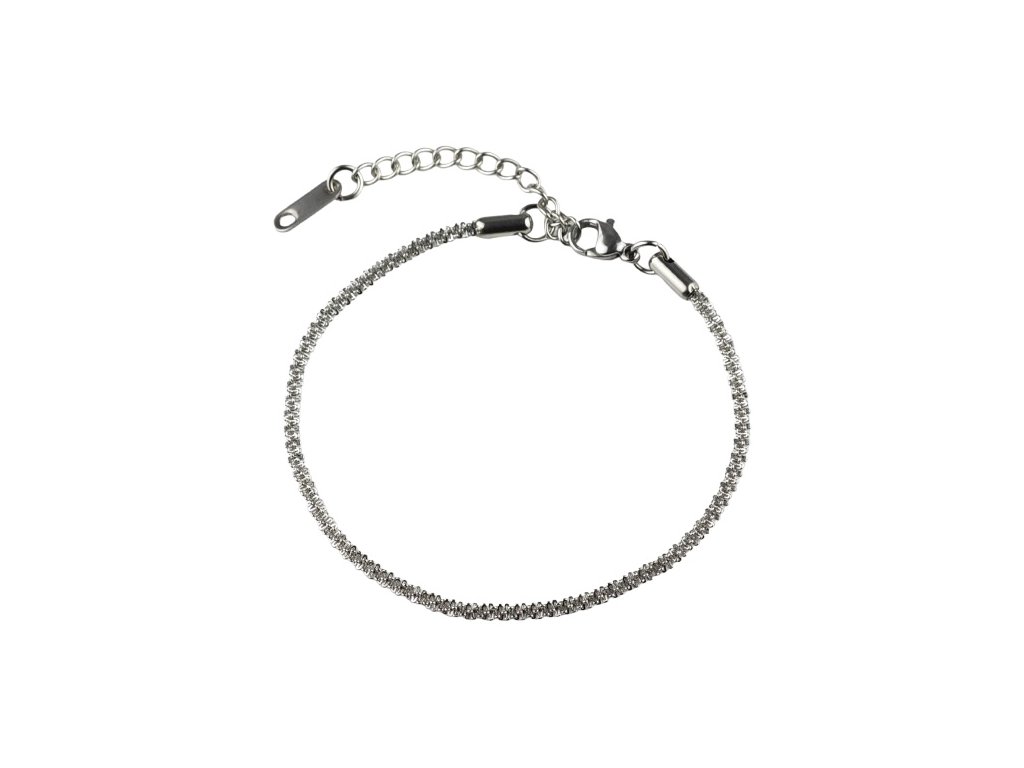 Jemný strieborný náramok z chirurgickej ocele s elegantným leskom, ktorý dodá šmrnc každému outfitu.