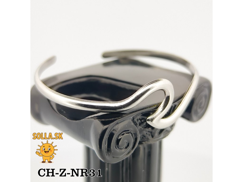 Otvorený tvar náramku umožňuje jednoduché nasadenie a pohodlné nosenie, pričom odolný hypoalergénny materiál je vhodný aj pre citlivú pokožku.