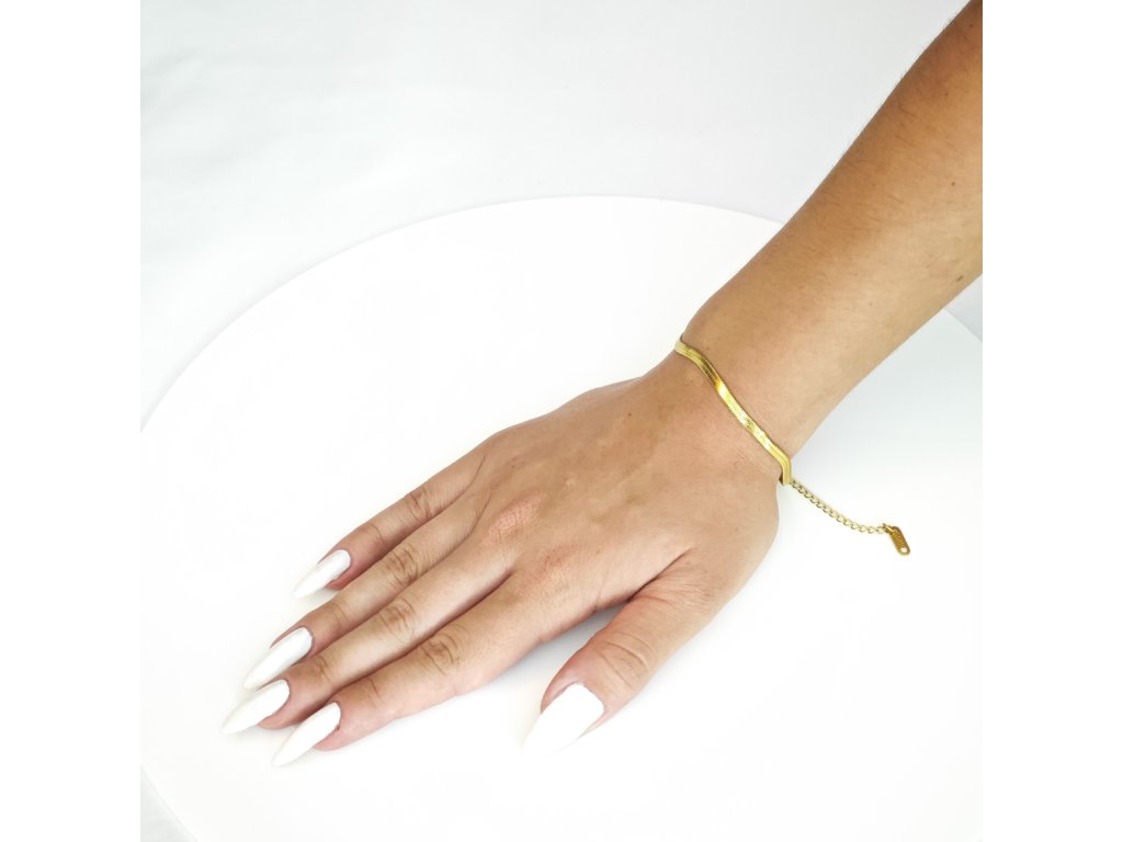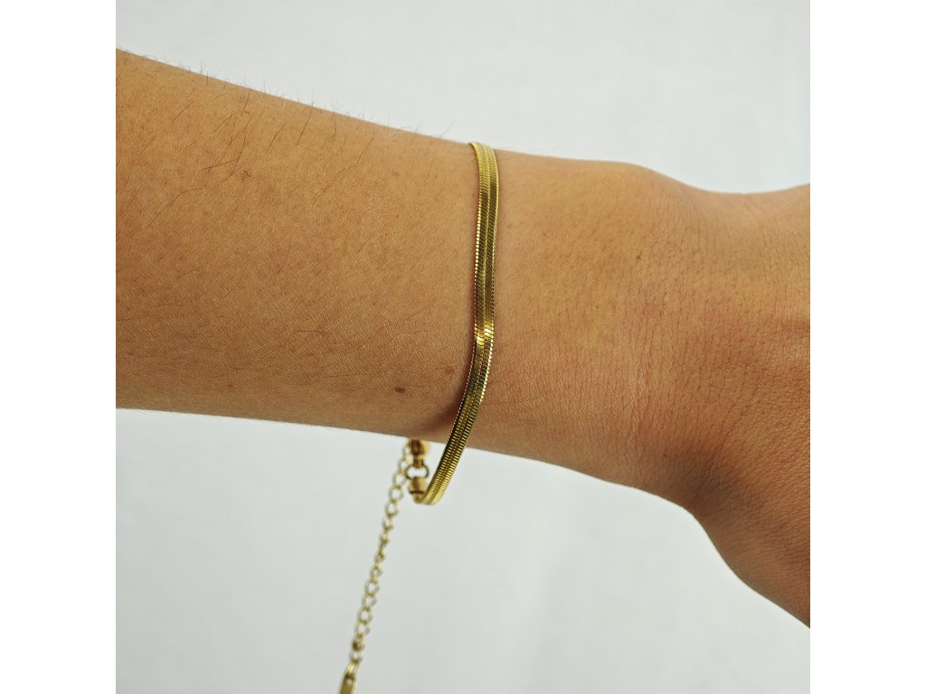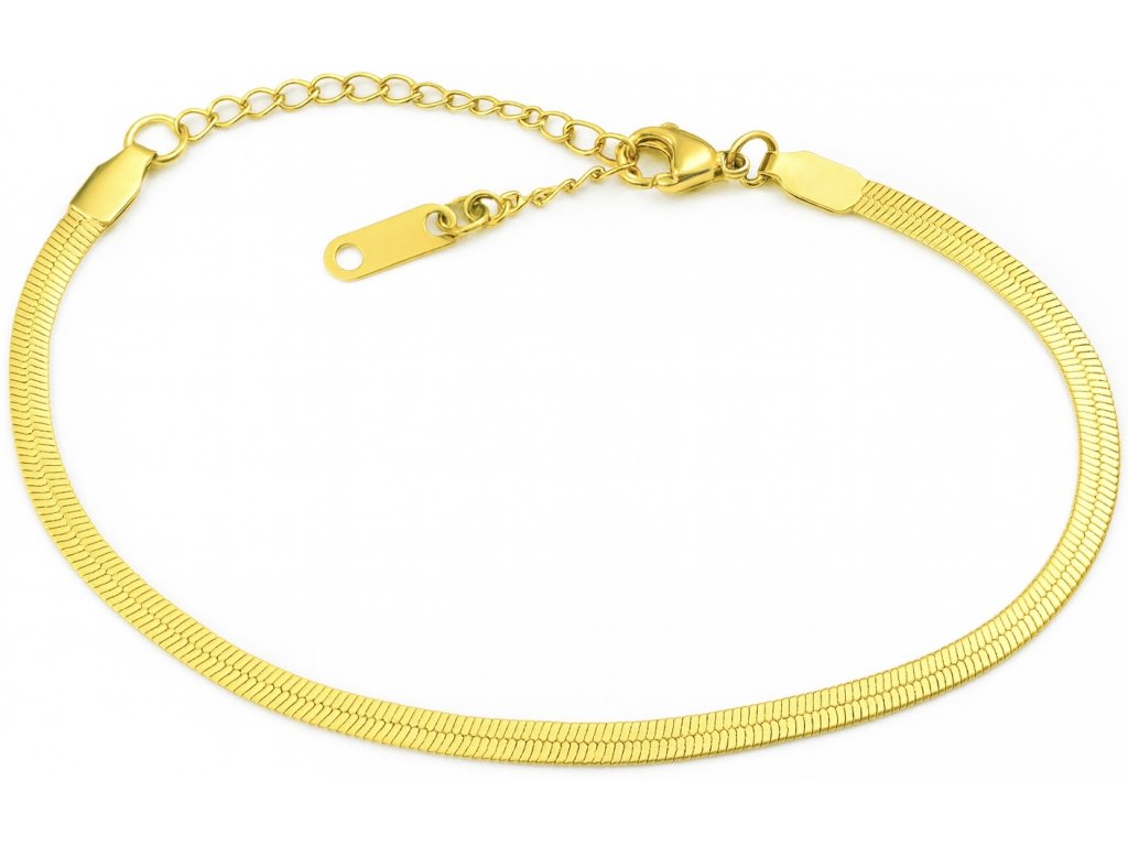 Elegantný pozlátený náramok so vzorom plochej hadovky pre nadčasový štýl.
