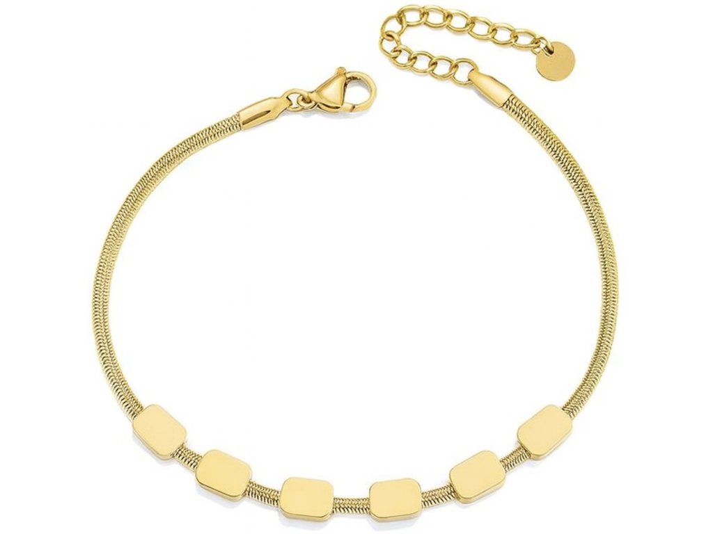 Dámsky náramok Cubo je spojením jednoduchosti a štýlu. Vyrobený z chirurgickej ocele s kvalitnou zlatou povrchovou úpravou, prináša odolnosť, hypoalergénne vlastnosti a luxusný vzhľad.