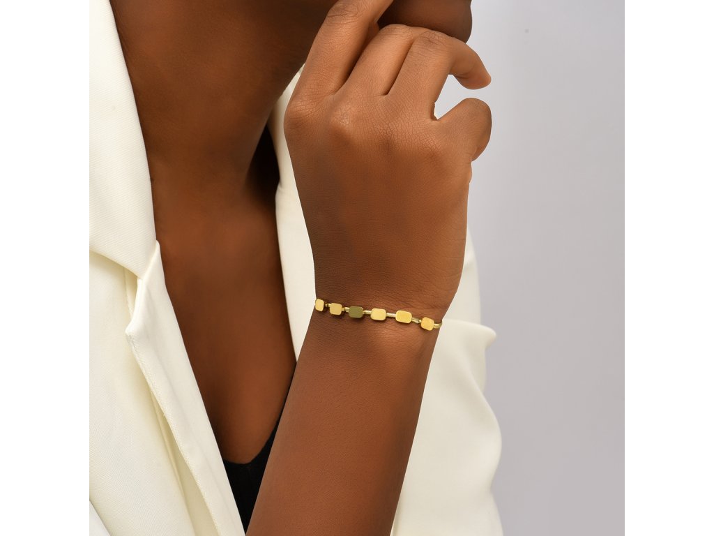 Minimalistický náramok s jemnými kockovými prvkami, ktorý dodá tvojmu outfitu moderný a elegantný nádych.