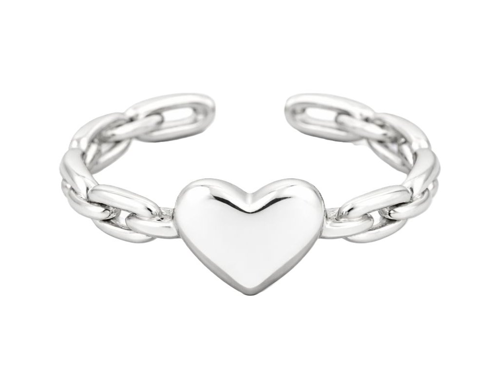 Amor Chain – otvorený prsteň s motívom reťaze a srdca