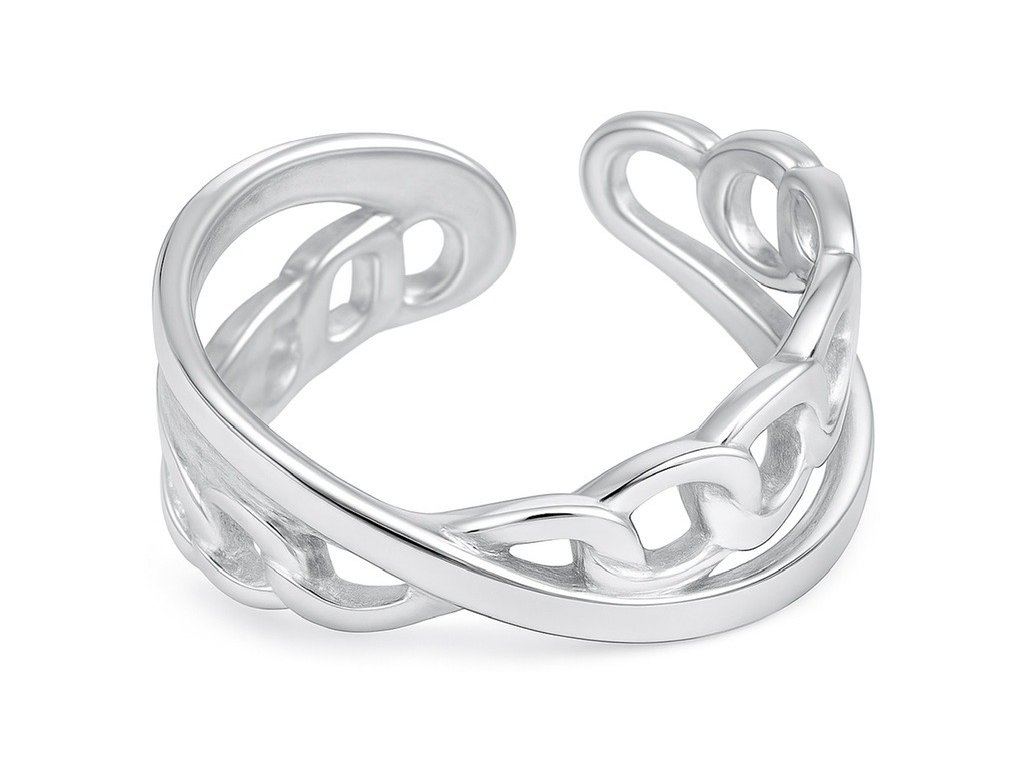 Štýlový dámsky prsteň s retiazkovým vzorom z chirurgickej ocele – moderný, nastaviteľný a odolný.