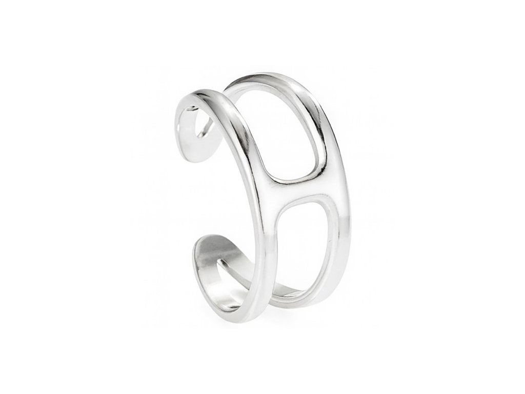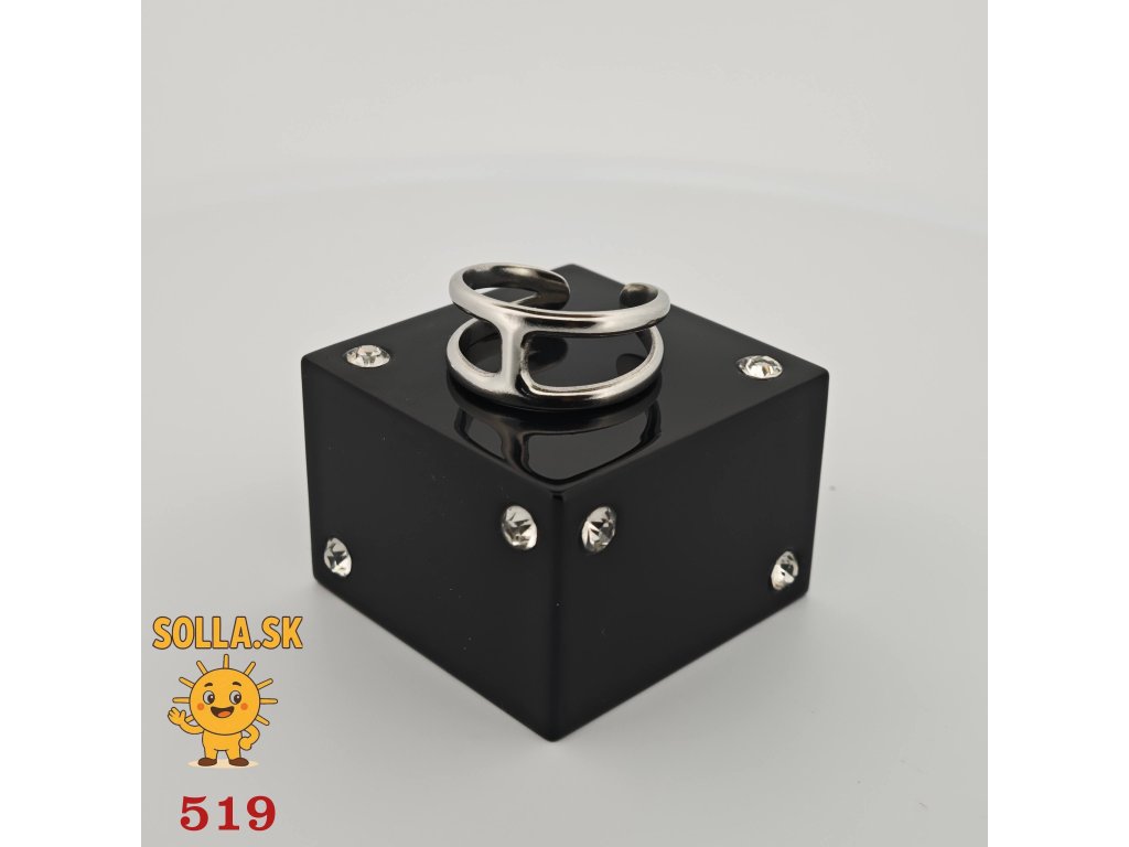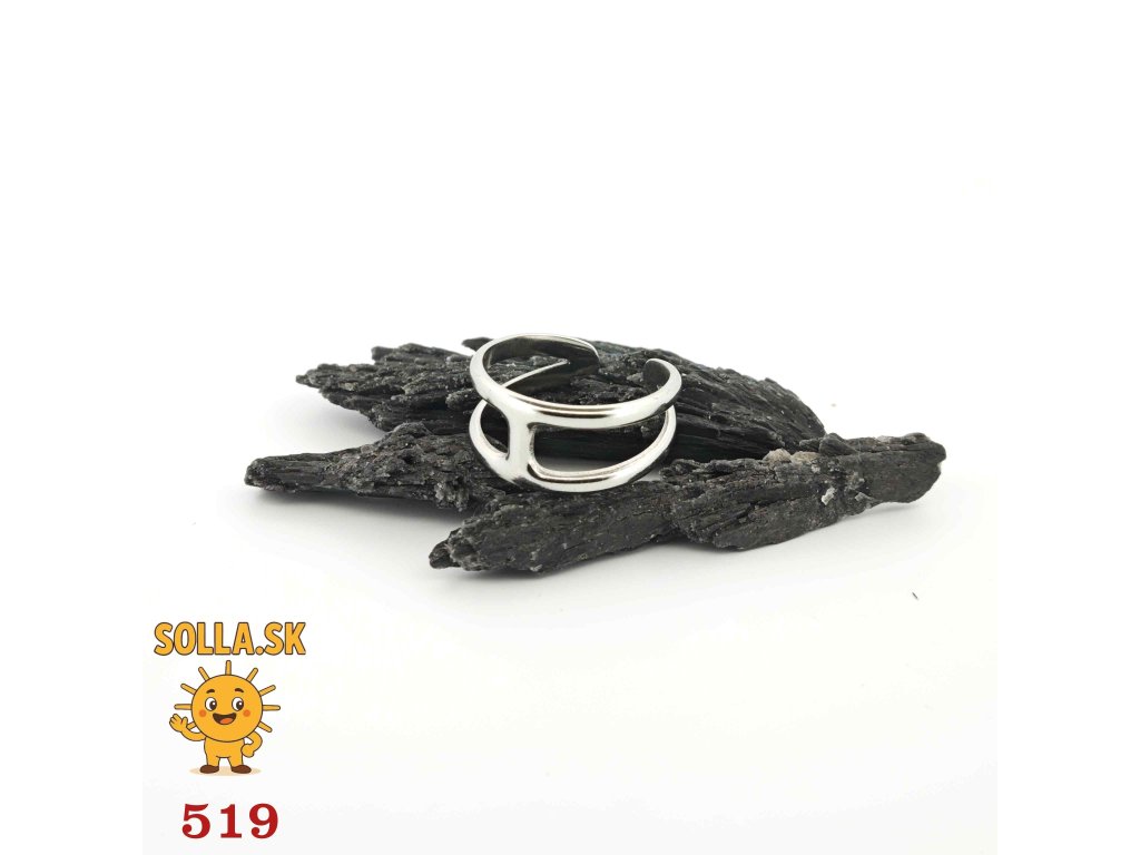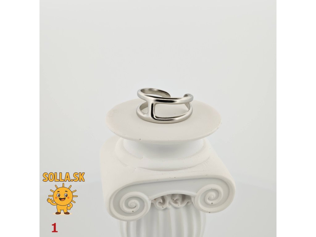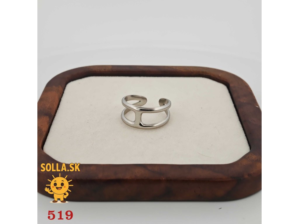 Moderný nastaviteľný prsteň z chirurgickej ocele s otvoreným geometrickým dizajnom.
