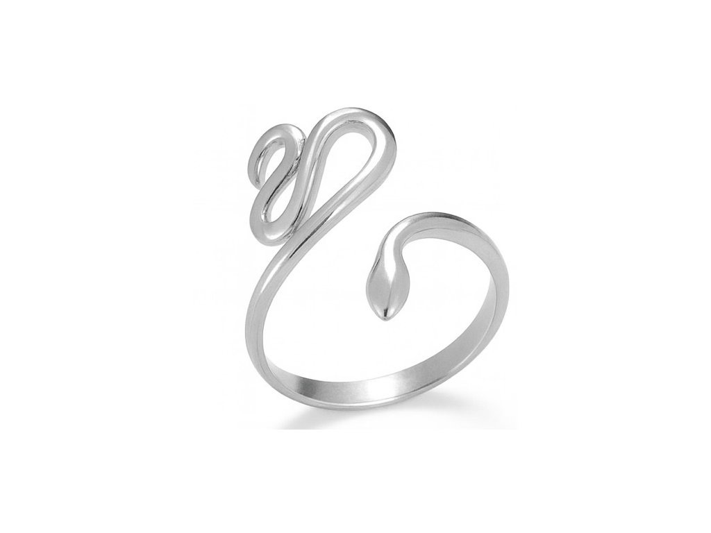Otvorený prsteň so zakrúteným dizajnom evokujúcim hadiu líniu – moderný šperk s mystickým nádychom.